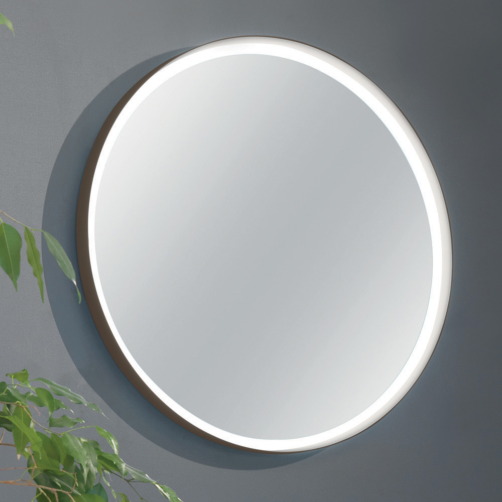 LED-belysning integrerad i hela omkretsen, kombinerat med en matt patinerad bronslackerad metallram.