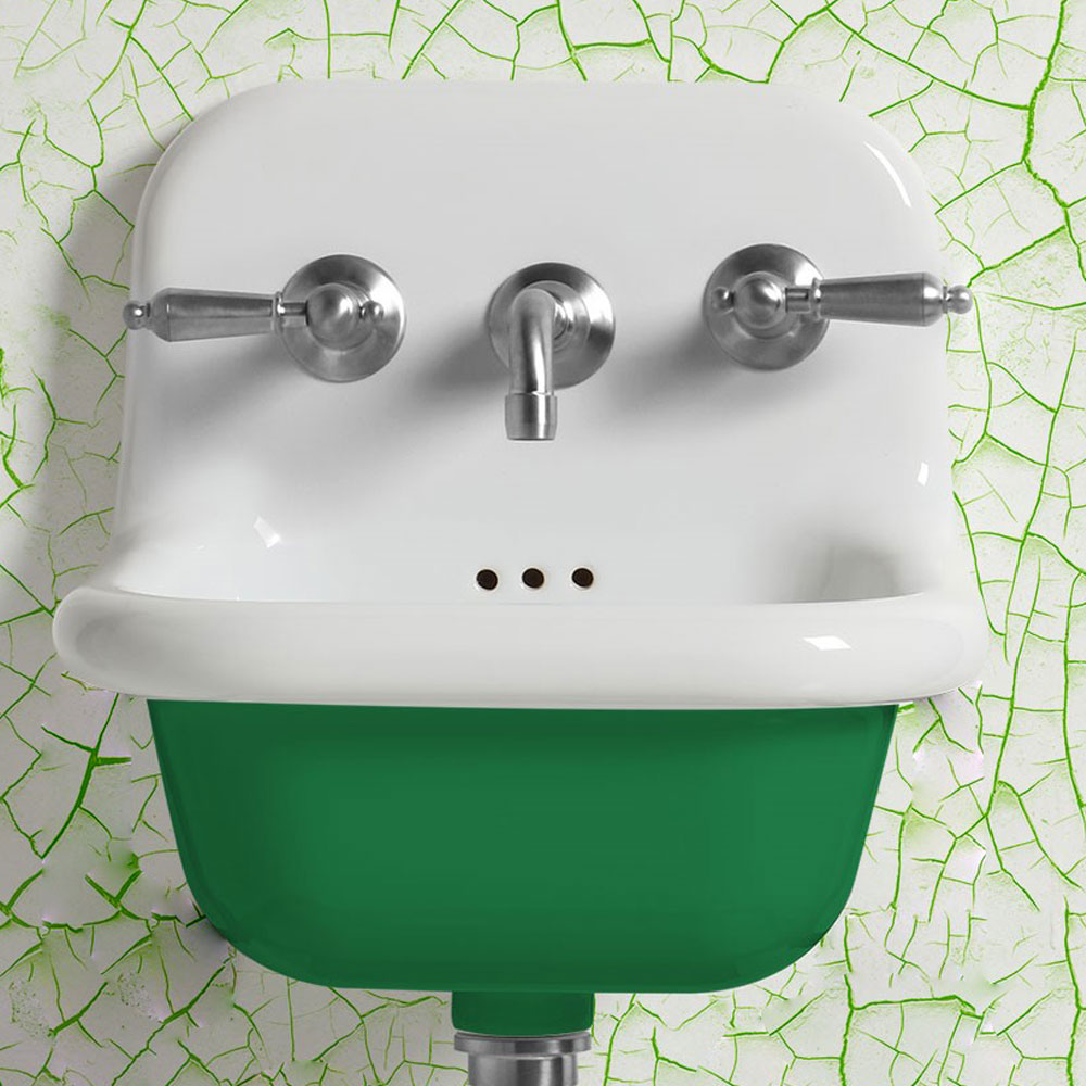 Vägghängt handfat i vitt och färgat keramiskt vintagestil.
