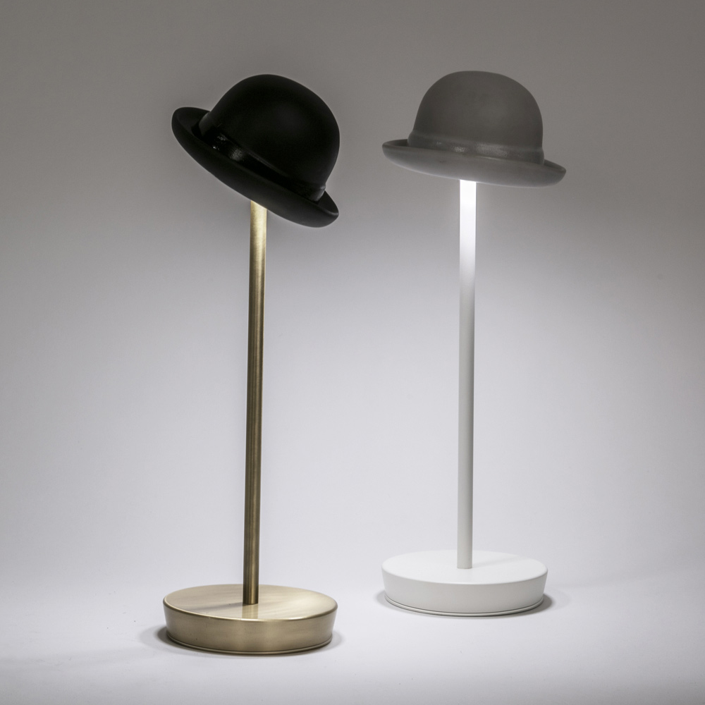 Perfekt som en konversation på ett modernt kontor eller som en nattlampa på ditt sängbord i sovrummet, denna lampa sticker ut för sin kreativa design som efterliknar en elegant hatt . Det är ett idealiskt val för den som letar efter funktionell belysning med en distinkt och lekfull estetik.
