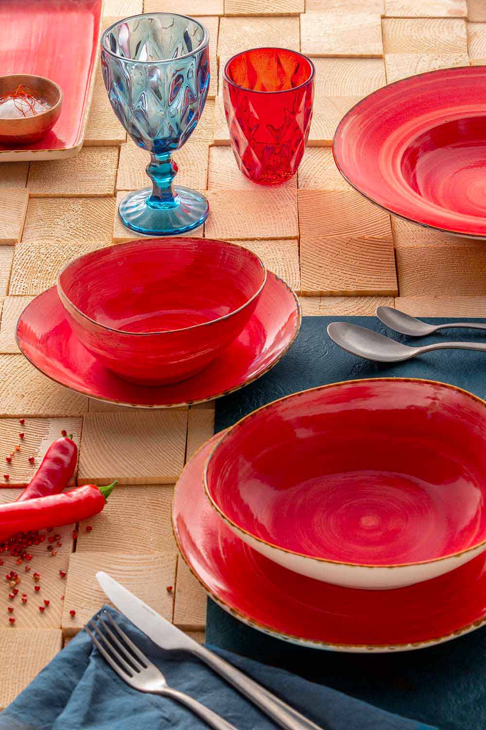 - chiliröd : en kryddig och fascinerande färg som kan förbättra diskens mjuka och övertygande linjer. En attraktiv och djup antydan till rött för att övertala individuella detaljer vid serveringen.