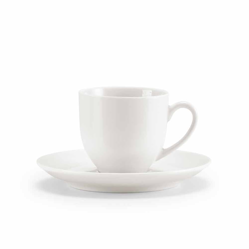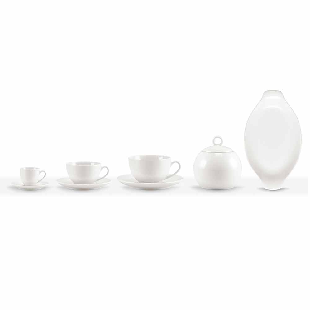 Service av kaffekoppar, te, frukost med sockerskål och tefat med modern design i vitt porslin, 20 stycken.