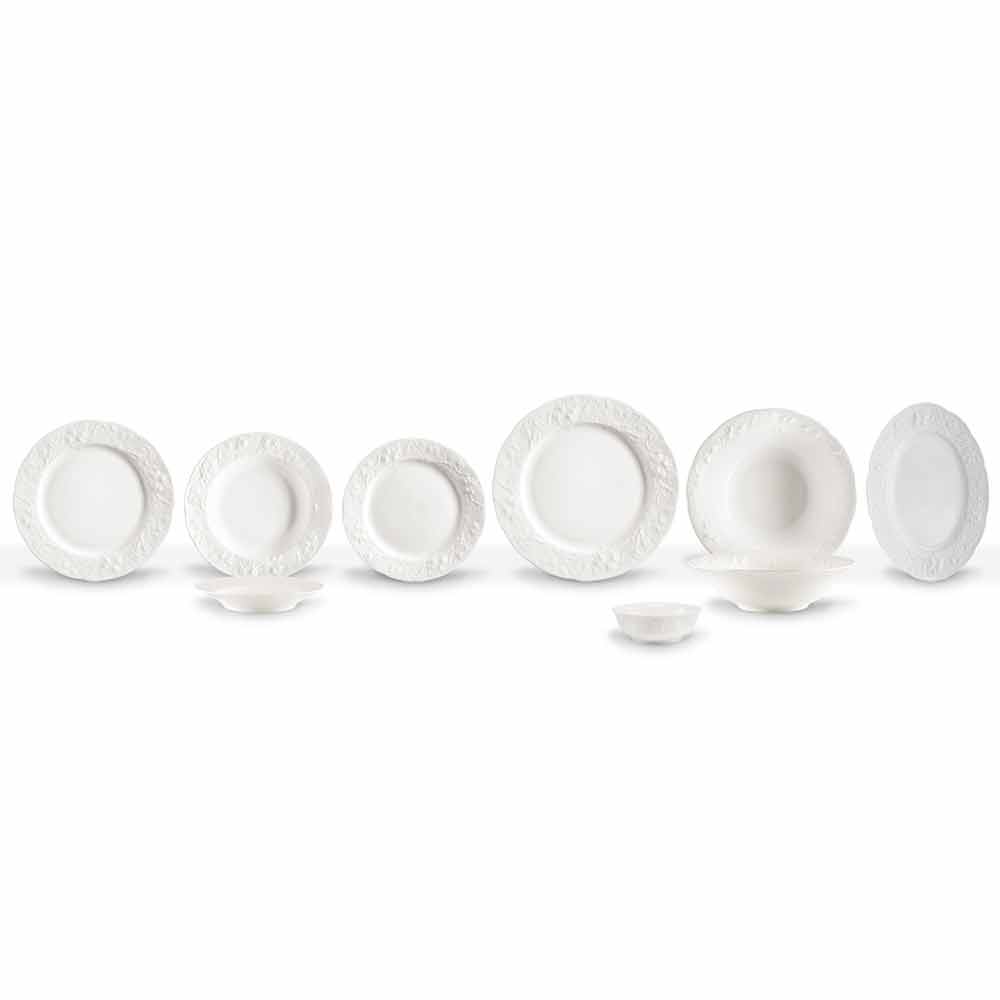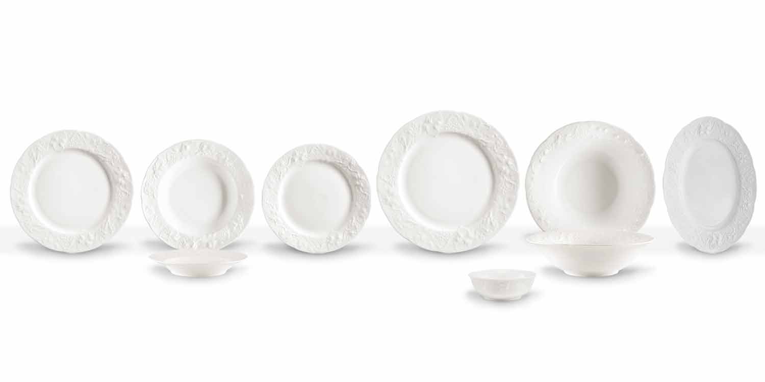 Upplev bordets kultur gjord av äkta känslor, reflekterad i en ren vit, välj mellan kreativa och spännande stilar, bland harmoniska former i fint porslin som denna tjänst erbjuder.