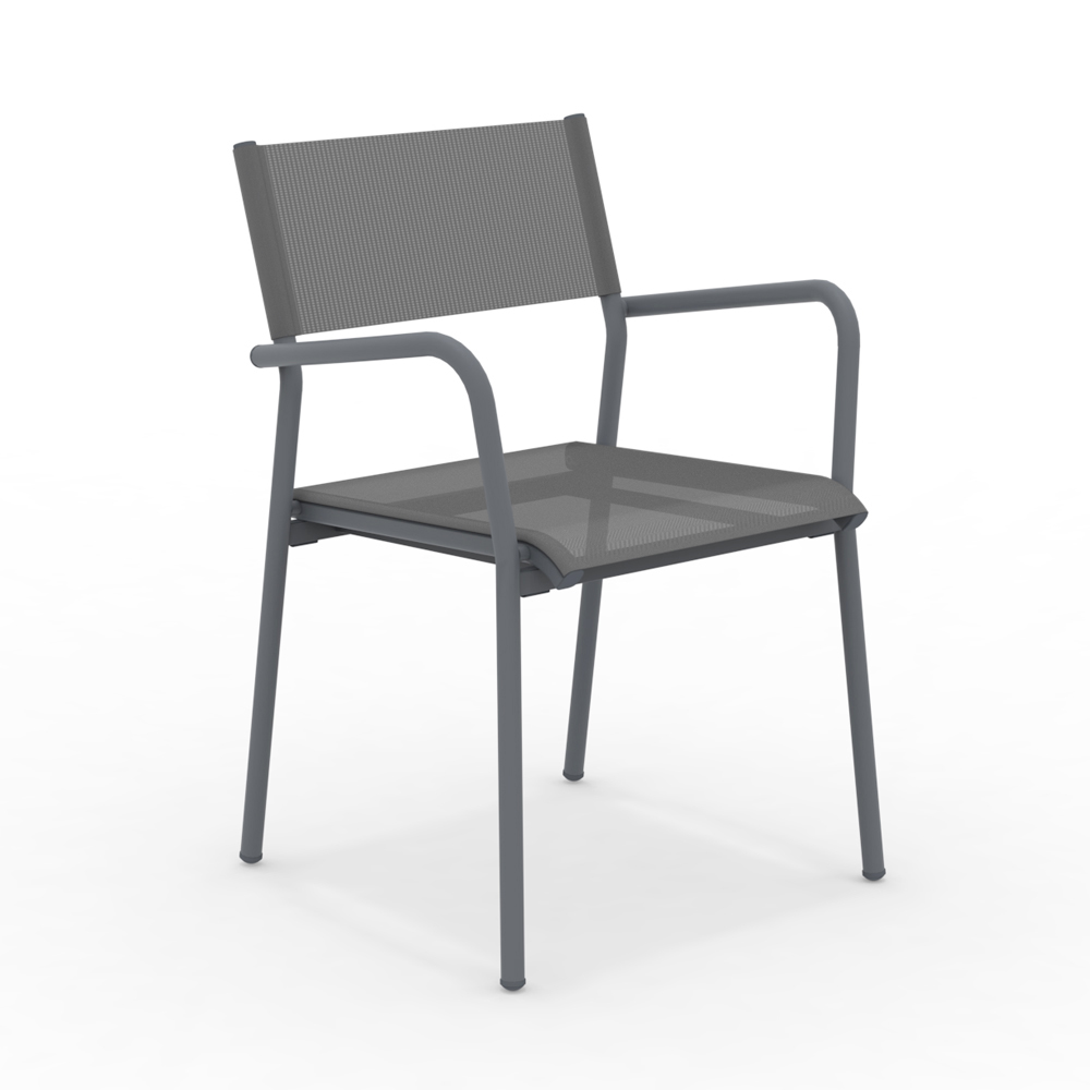 Batyline-sitsen och ryggstödet erbjuder optimal komfort tack vare deras andningsförmåga och motståndskraft mot atmosfäriska faktorer, vilket säkerställer långvarig användning utan underhåll. De integrerade armstöden ger en touch av komfort, vilket gör denna fåtölj perfekt för långa stunder av avkoppling i det fria.