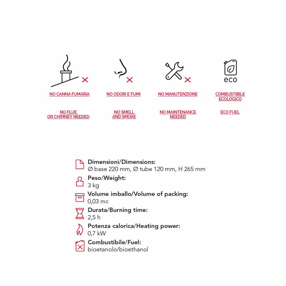 Jim är en fantastisk och små biocamino bänkskivan, en originell design, elegant och raffinerad, lämplig att återupptäcka betydelsen av den inhemska eld och med stor funktionalitet.