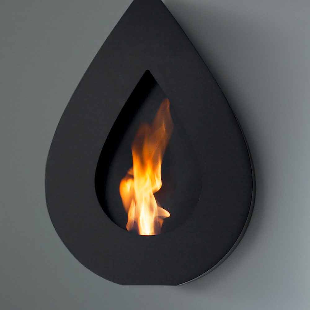 Dess form påminner om silhuetten av en minimal, elegant och modern låga som omsluter ett hjärta av levande eld. Enkel att applicera, den fästs direkt på väggen som en tavla, men till skillnad från den är det ett ständigt rörligt verk som ger personlighet till miljön. Det distinkta estetiska och funktionella inslaget i detta föremål är därför dess fantastiska form, unik i sitt slag.