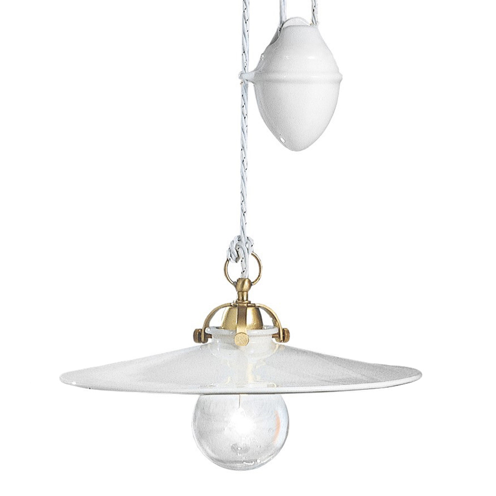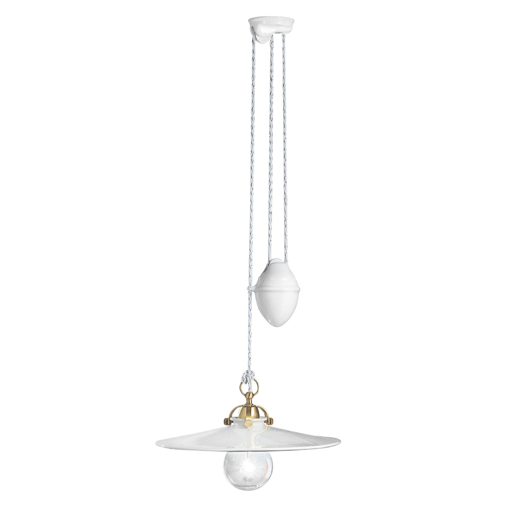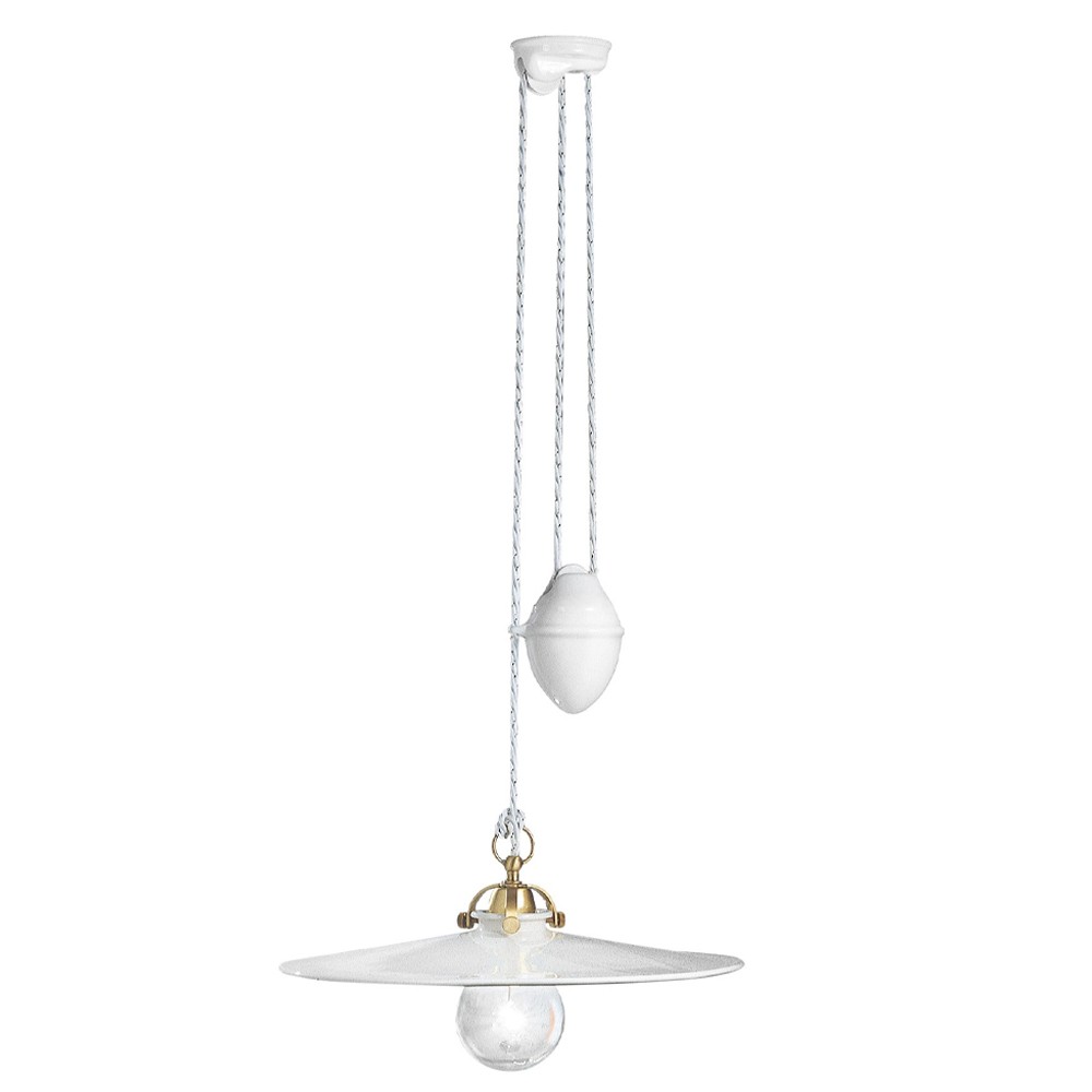 Upphängd upp och ner lampa i järn och blank keramik, vintage 2 storlekar, tillverkad i Italien av Ferroluce.