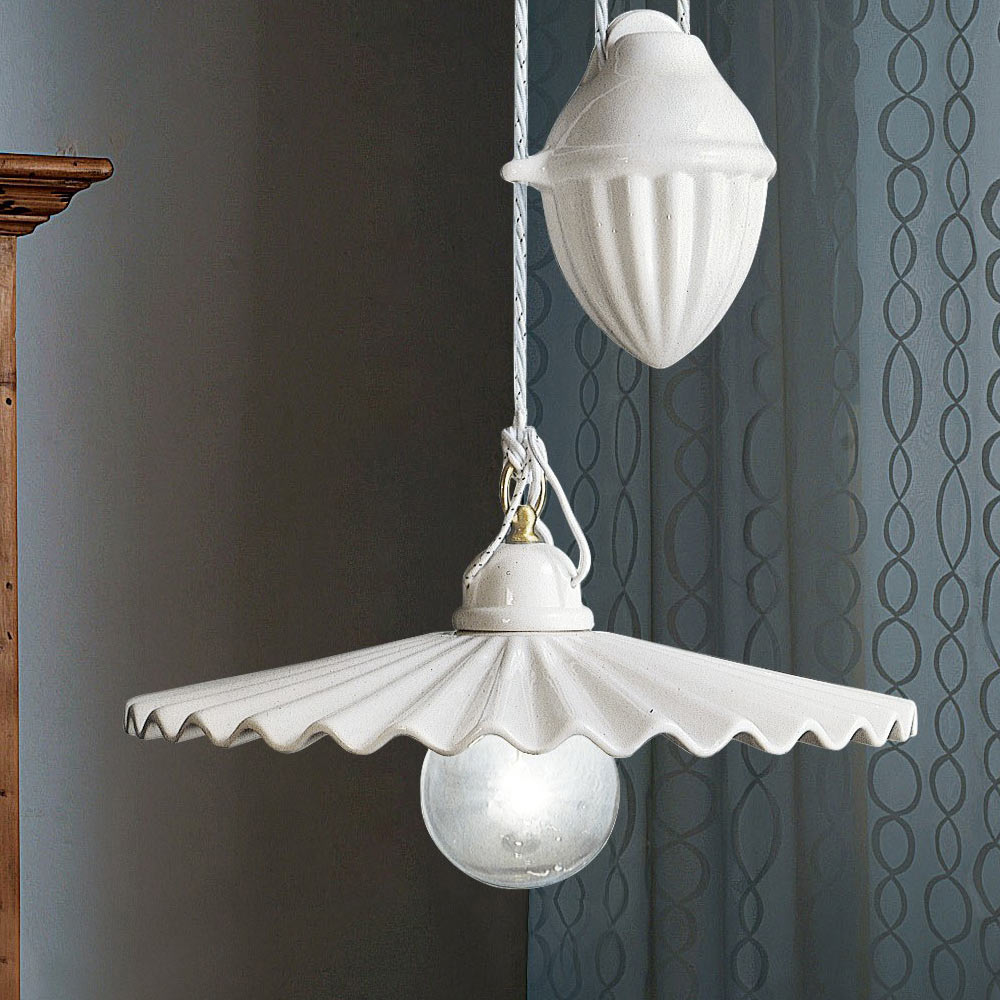 Upp och ner lampa i glänsande keramisk veckad design tillverkad i Italien av Ferroluce.