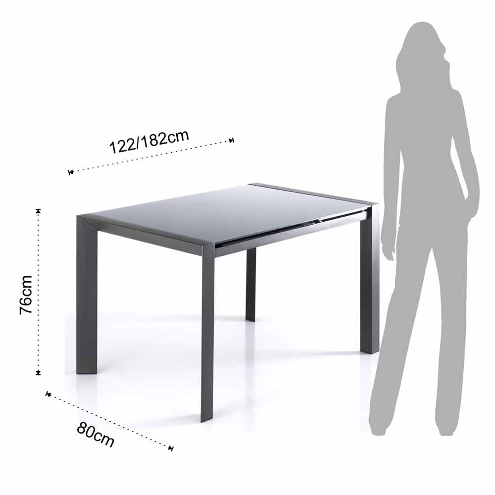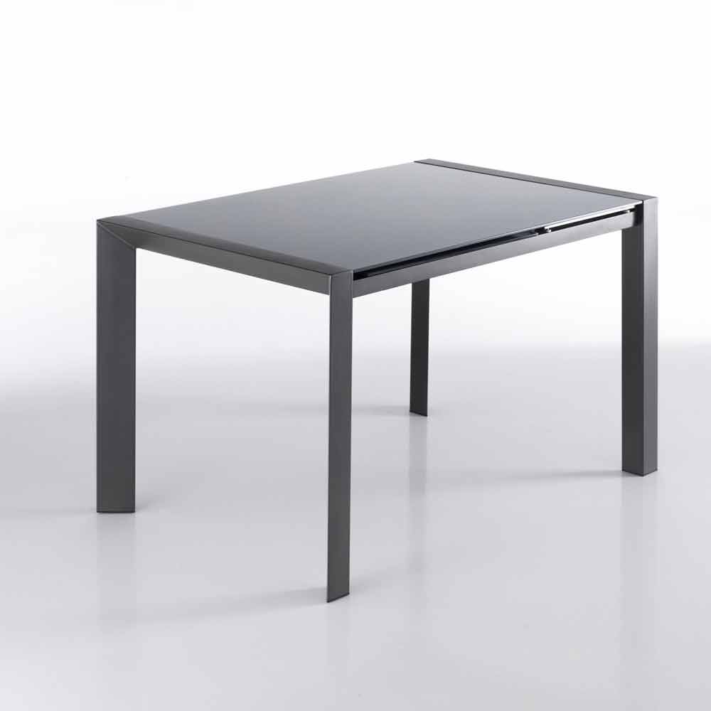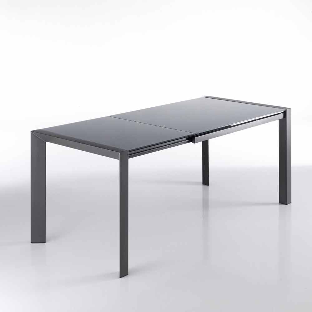 Utdragbar bord härdat glas grå målad metall och Zeno