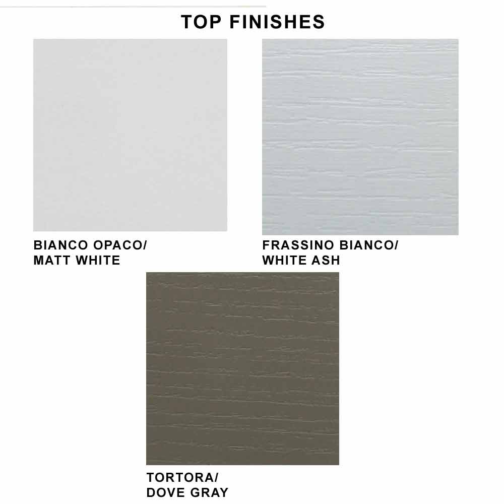 vitt eller grafitlackerat stål. Tillgängliga ytbehandlingar för toppen:- topp i matt vitlackerad melamin;