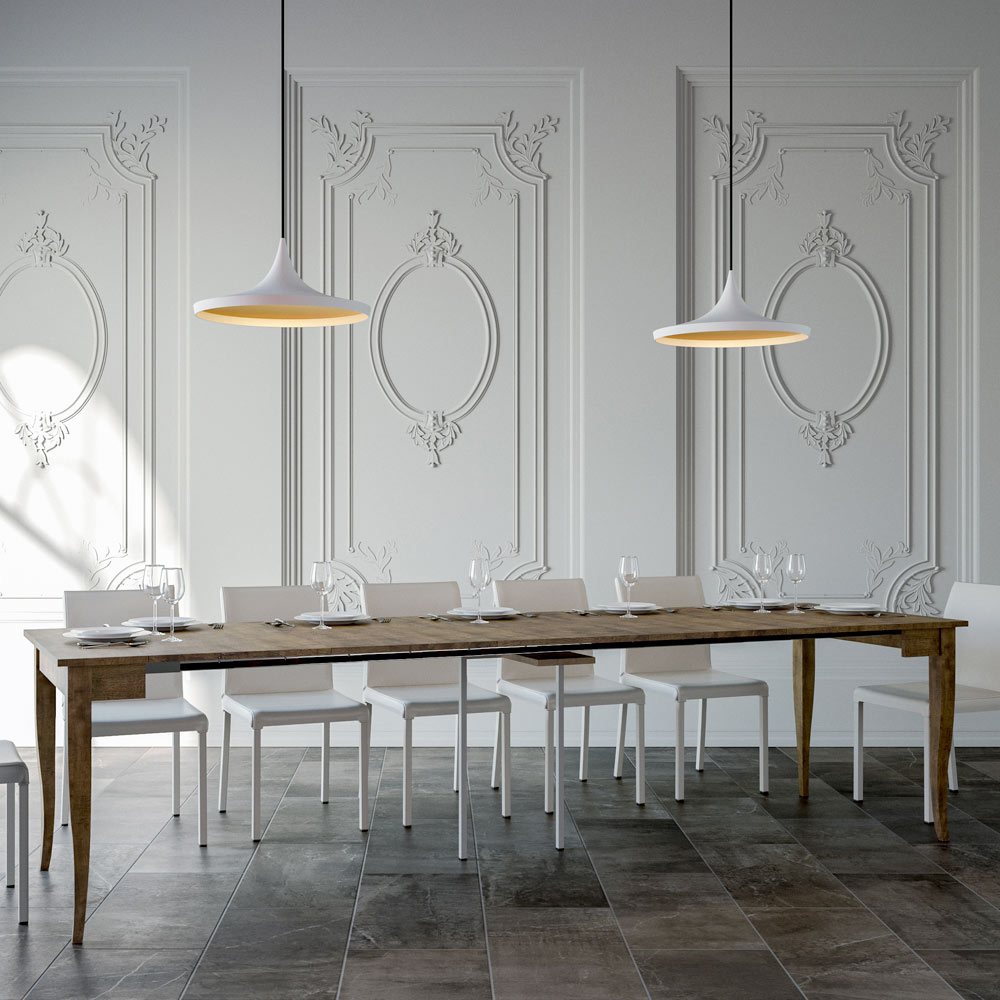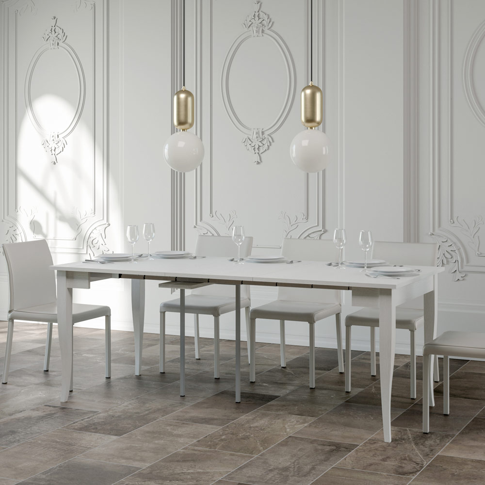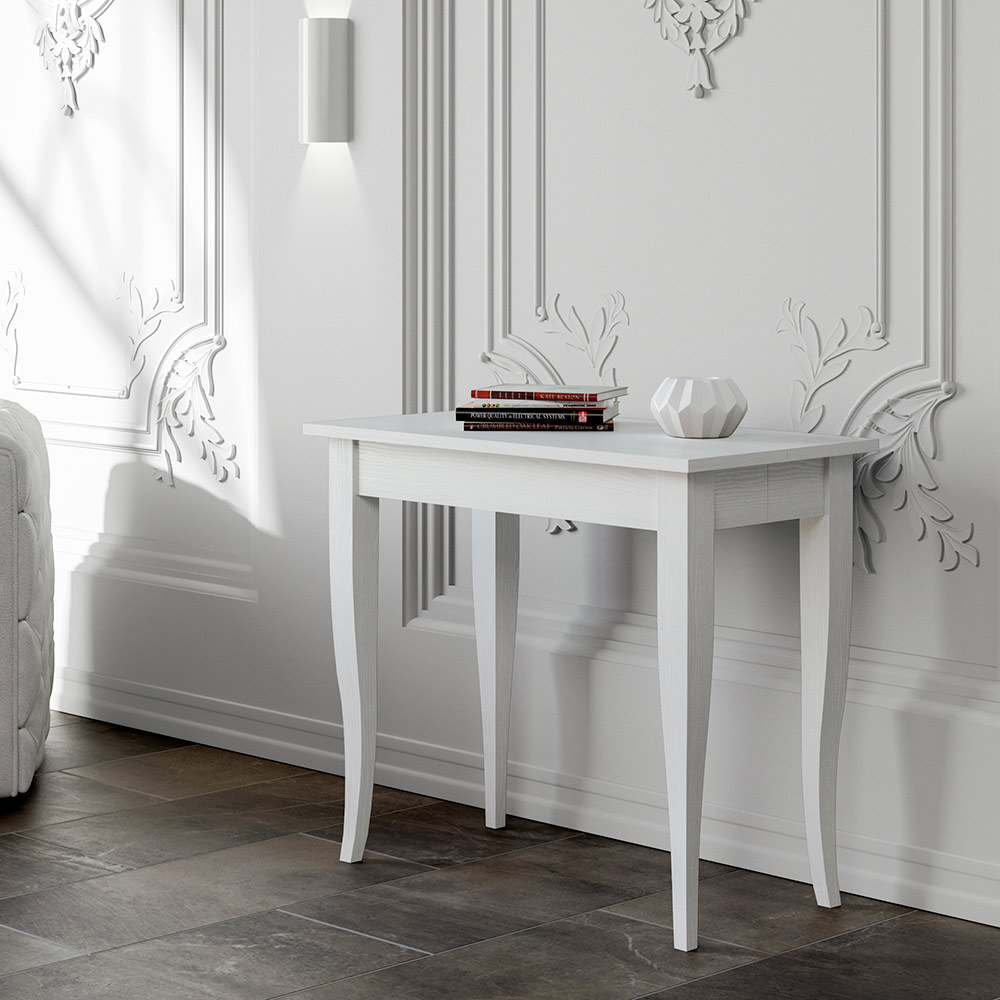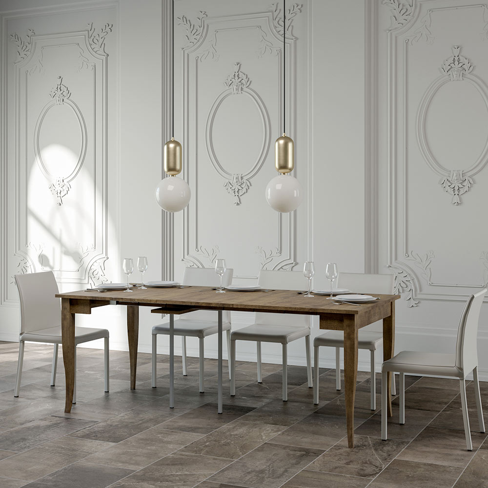 Den utdragbara funktionen hos detta konsolbord gör det till en möbel med stor anpassningsförmåga , som kan expandera för att passa dina sociala stunder eller förbli kompakt när du vill ha mer ledigt utrymme. È den perfekta lösningen för dig som letar efter en möbel som är vacker att se på och enkel att använda, som kan förvandla vilket utrymme som helst till en mysig och funktionell plats.