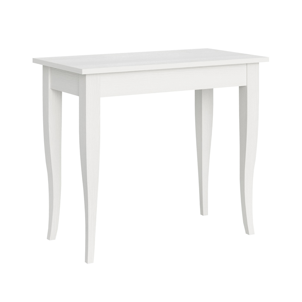 Det här förlängningsbara konsolbordet är en hyllning till renhet och nåd. Med sin vackra skiva i trä framkallar det en känsla av friskhet och rymd, medan de böjda benen ger en touch av flytande elegans till den övergripande designen.