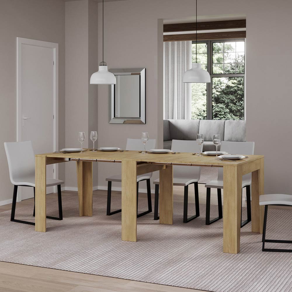 Detta förlängningsbara konsolbord è är symbolen för funktionell och minimalistisk design. Dess eleganta form och rena linjer gör det till en mångsidig möbel, perfekt för alla utrymmen från entrén till vardagsrummet, och ger en bild av rymd och ordning. Konsolbordet kan enkelt byggas ut och förvandlas från en diskret möbel till ett praktiskt matbord, perfekt för att bjuda in vänner och familj vid speciella tillfällen. Denna mångsidighet gör det till ett perfekt val för dem som bor i små utrymmen men inte vill offra funktionalitet och stil.