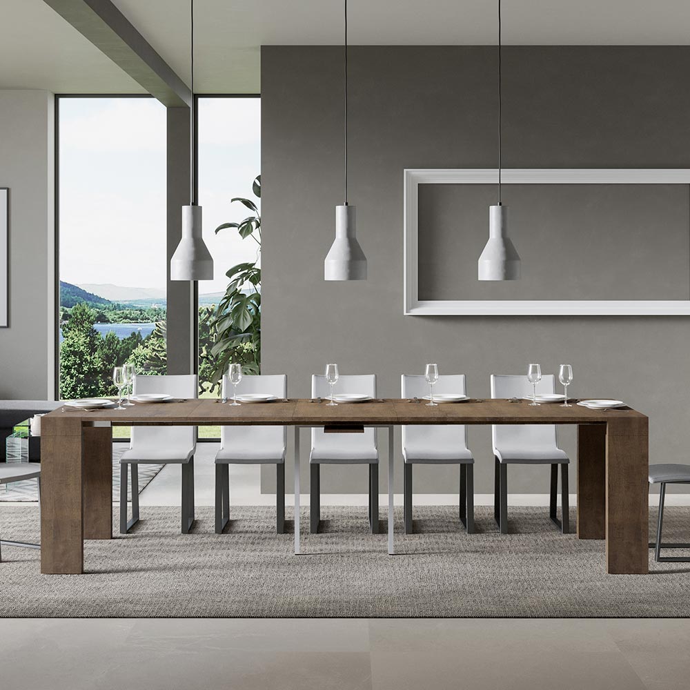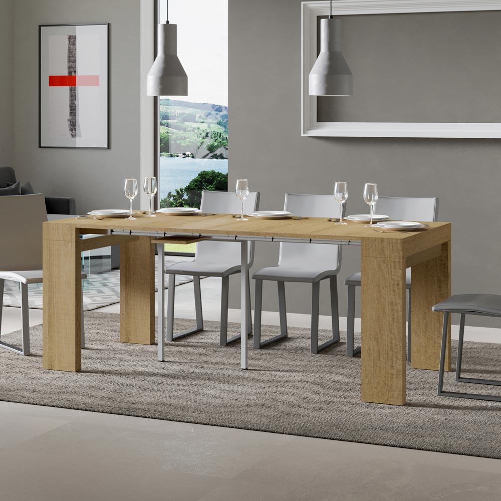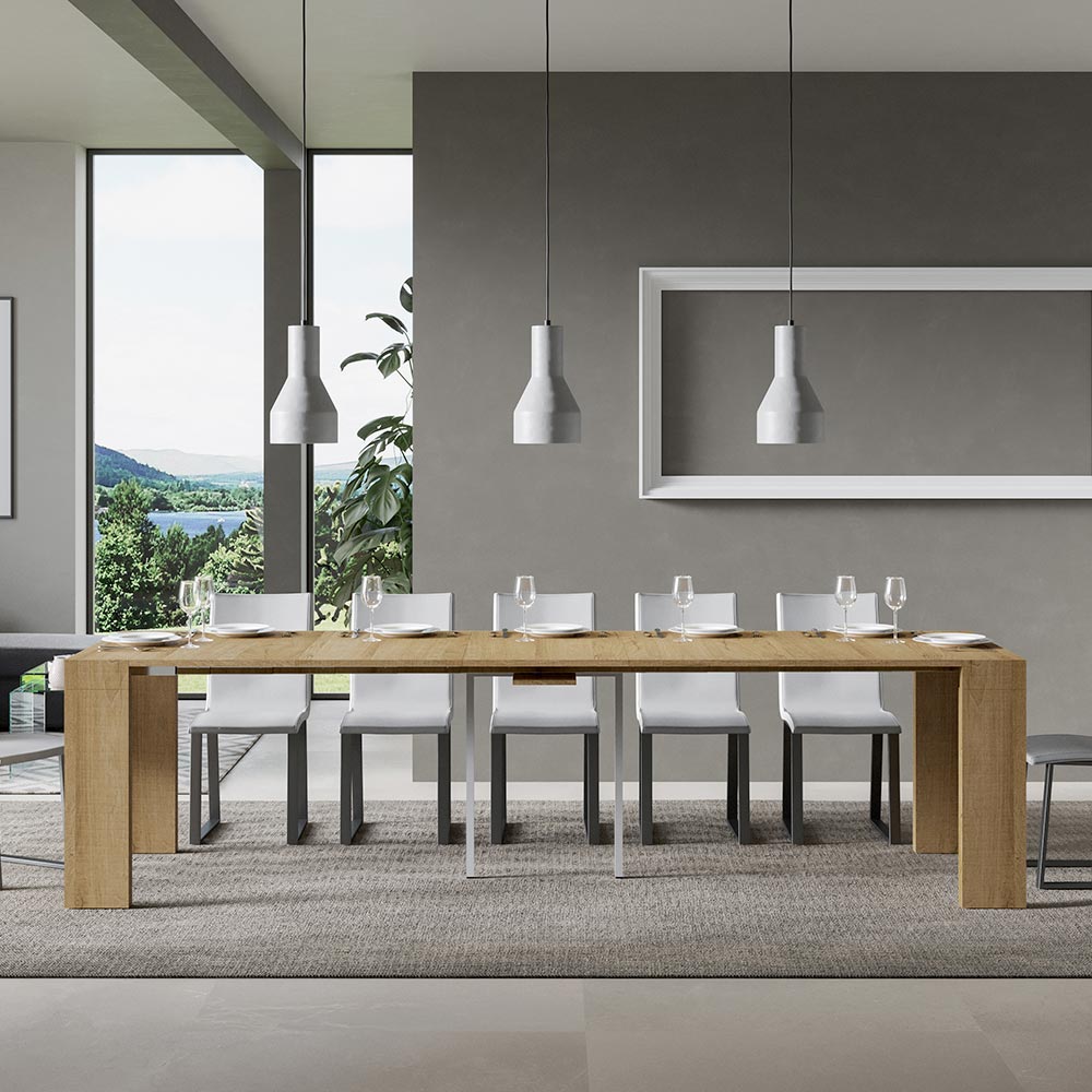 Den utdragbara mekanismen è ett exempel på rumslig intelligens: konsolbordet kan enkelt omvandlas till ett större bord, vilket gör det till en mångsidig lösning för små lägenheter eller rum som kräver multifunktionella möbler. È det'är perfekt för dem som uppskattar funktionell skönhet och smart design som sparar utrymme utan att offra stil.