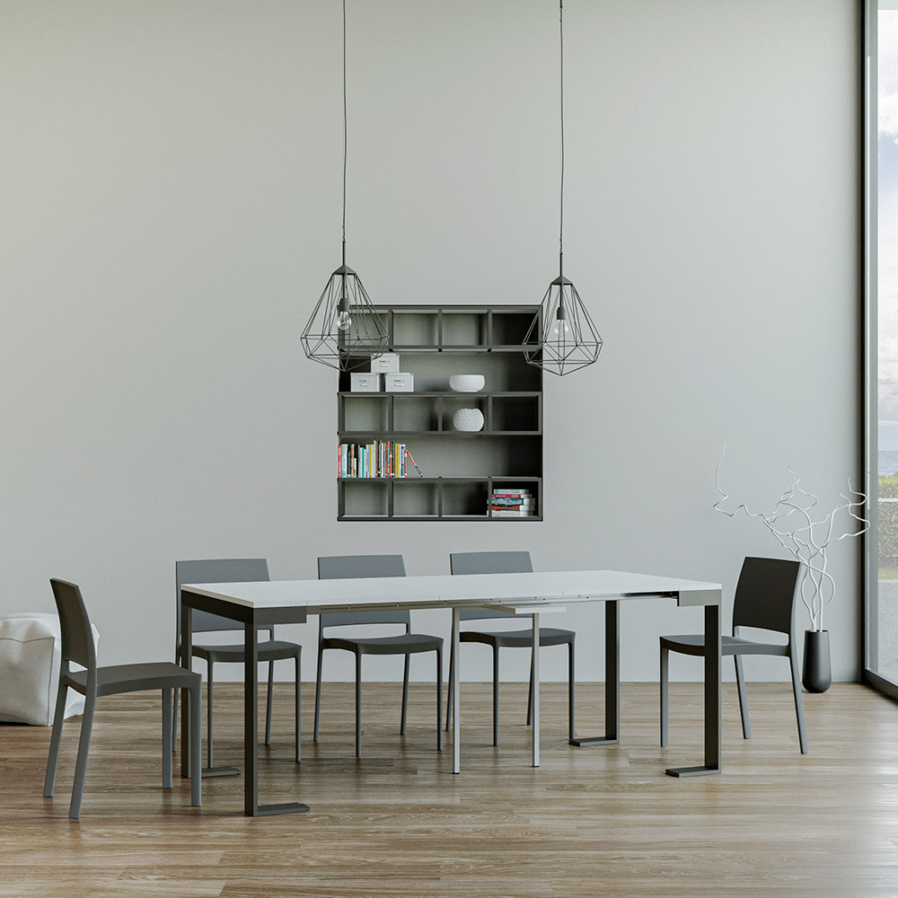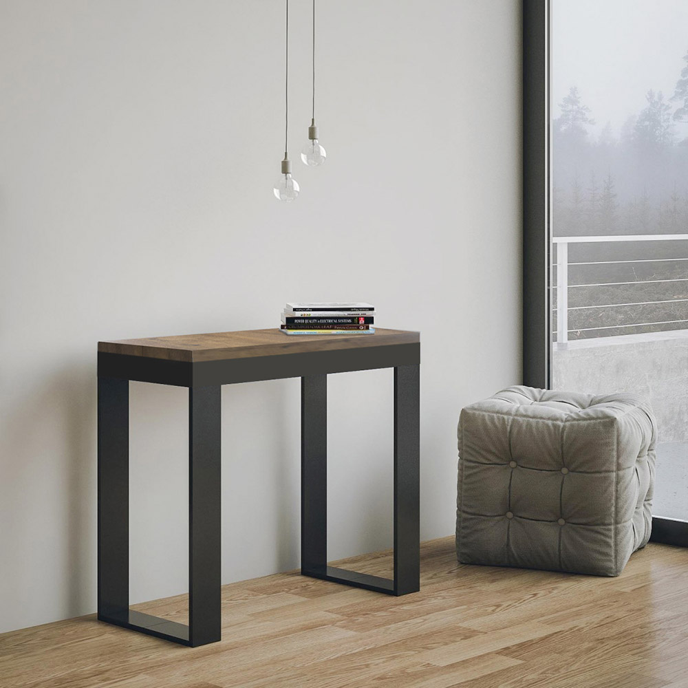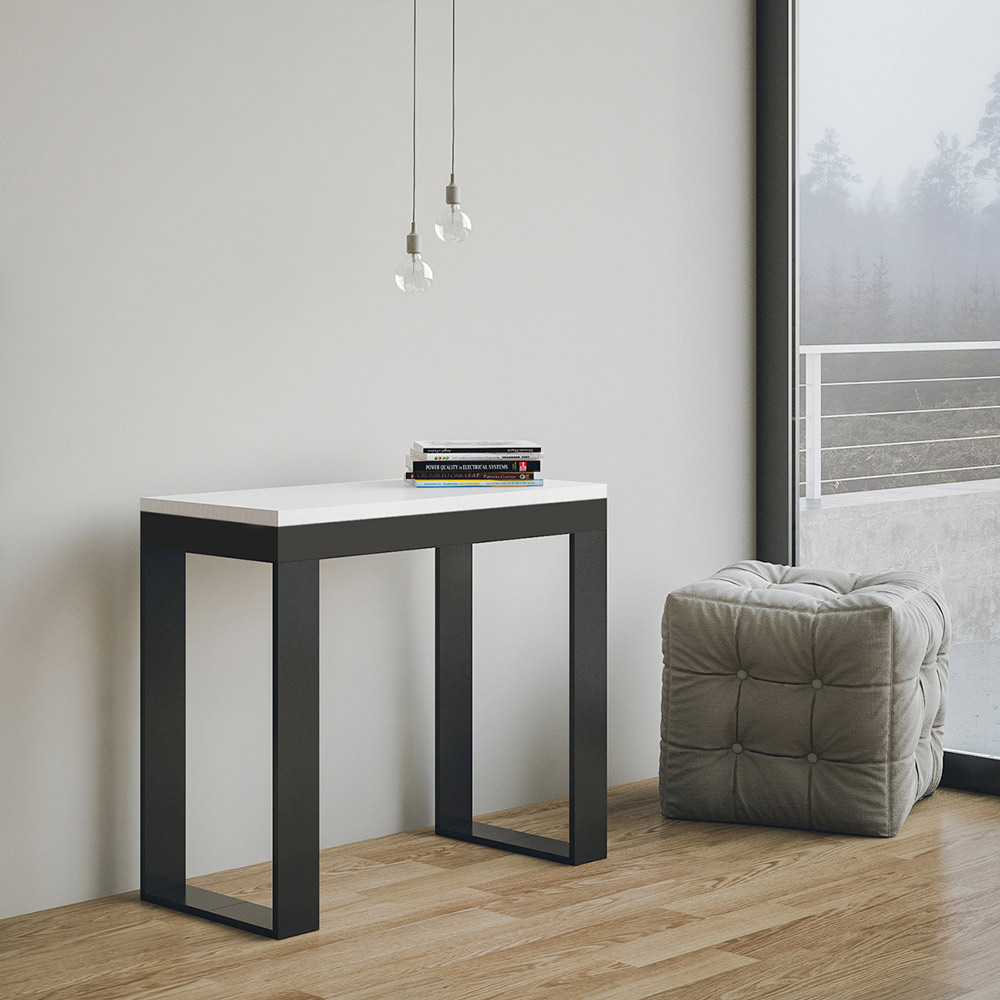 Detta utdragbara konsolbord är ett exempel på modern design som kombinerar elegans och praktikalitet.