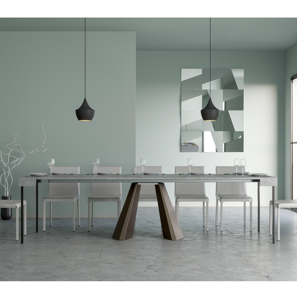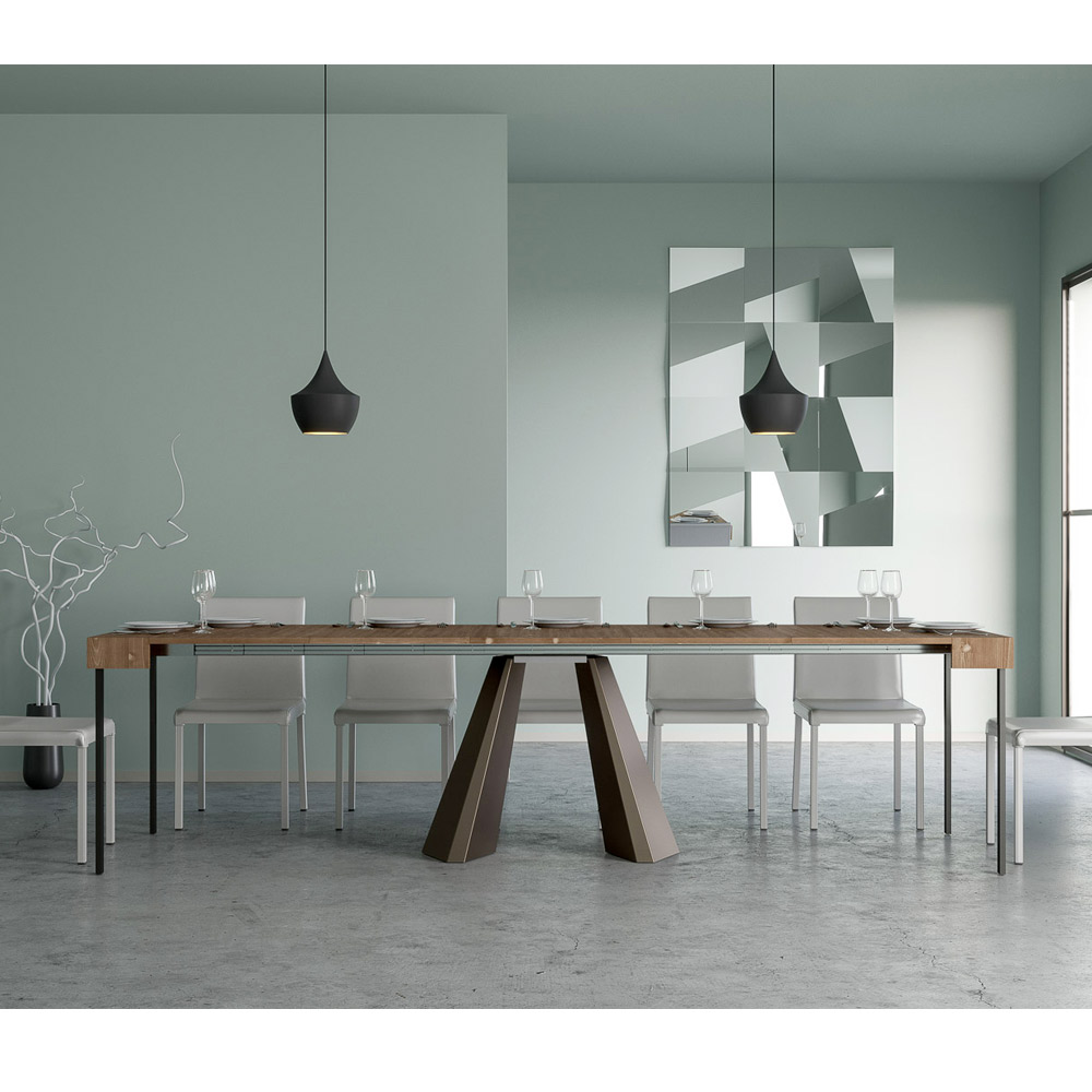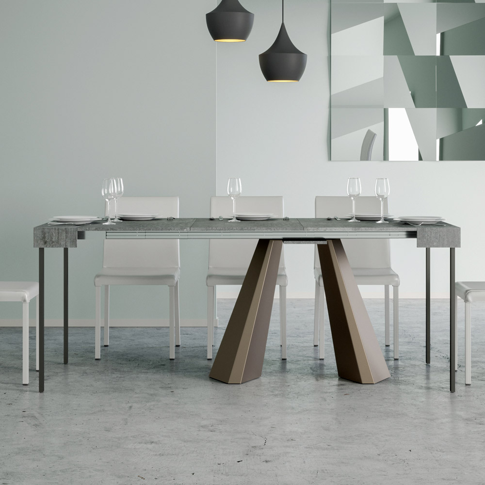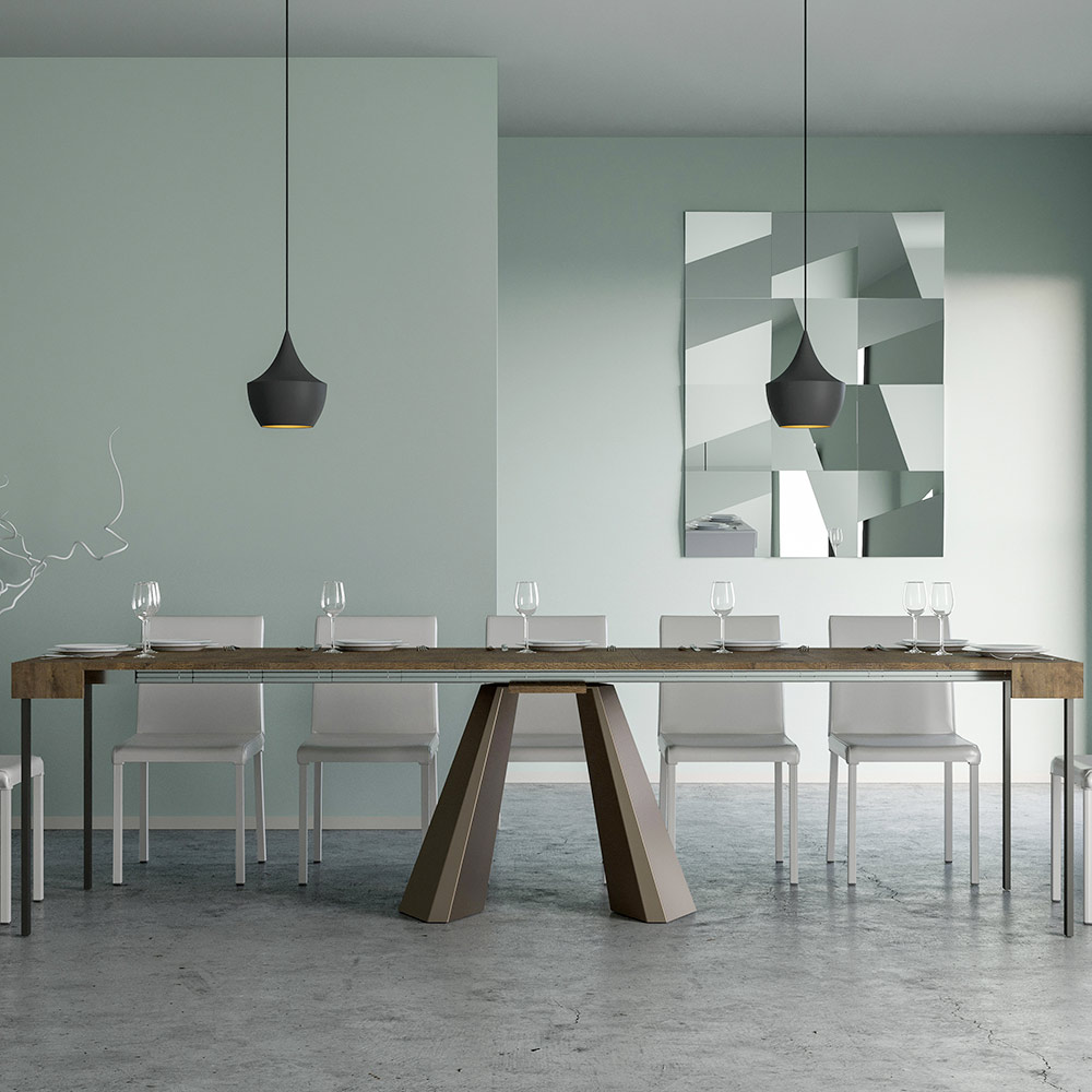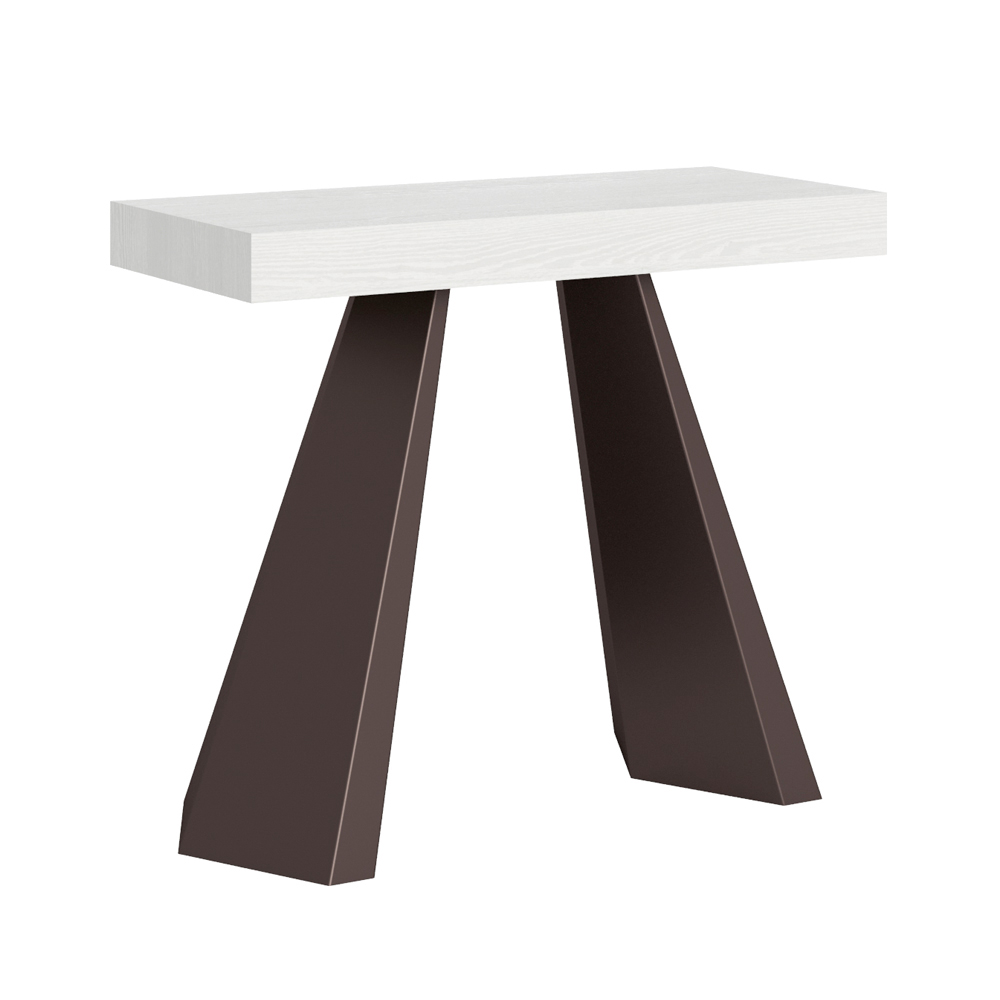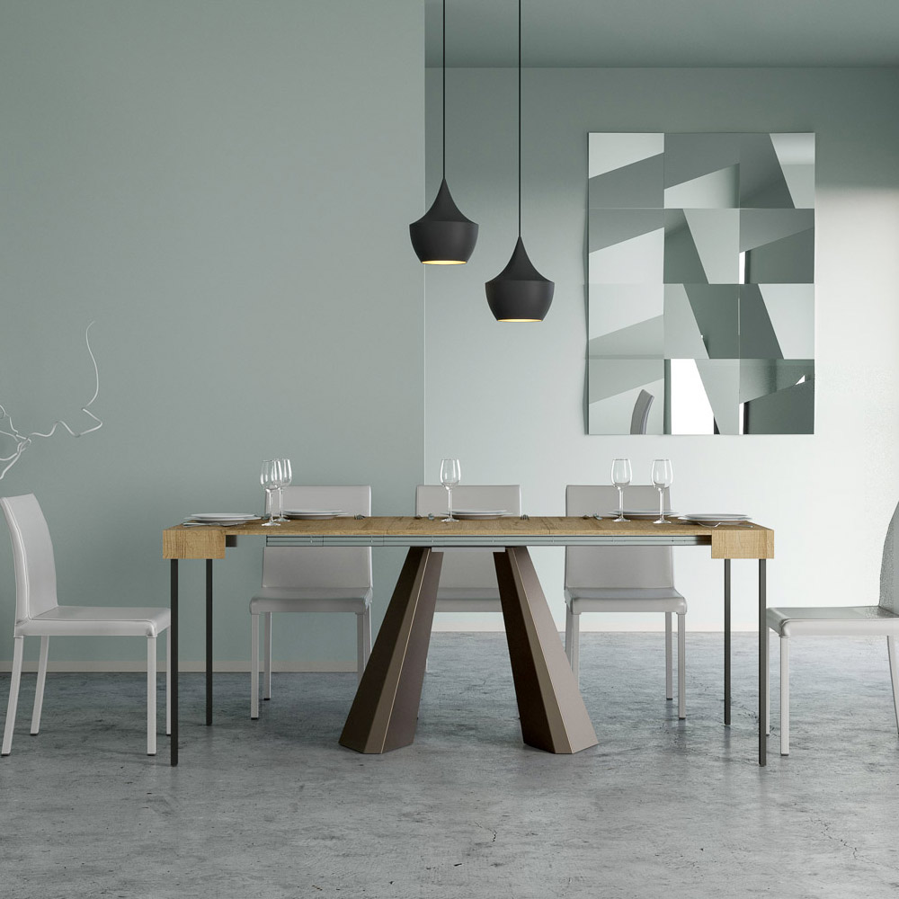 Det unika med detta konsolbord ligger i dess ben, som påminner om de geometriska formerna i modern arkitektur, vilket ger ett kulturellt och avantgardistiskt utseende. Tack vare det utdragbara systemet förvandlar denna möbel alla utrymmen från enkla till extraordinära, och kan förlängas för att rymma sociala tillfällen eller för att ge den extra yta du behöver.