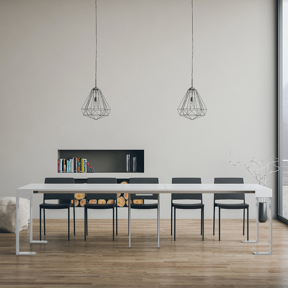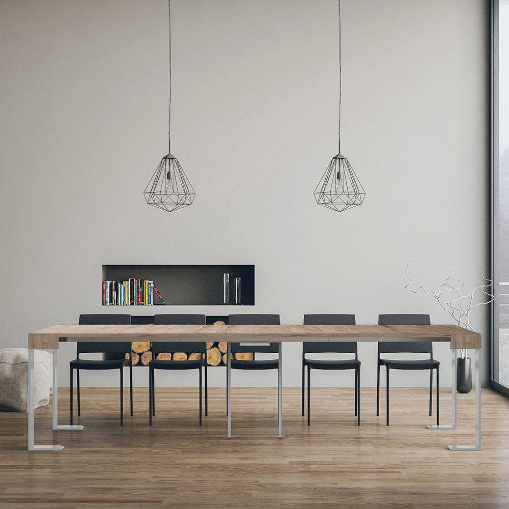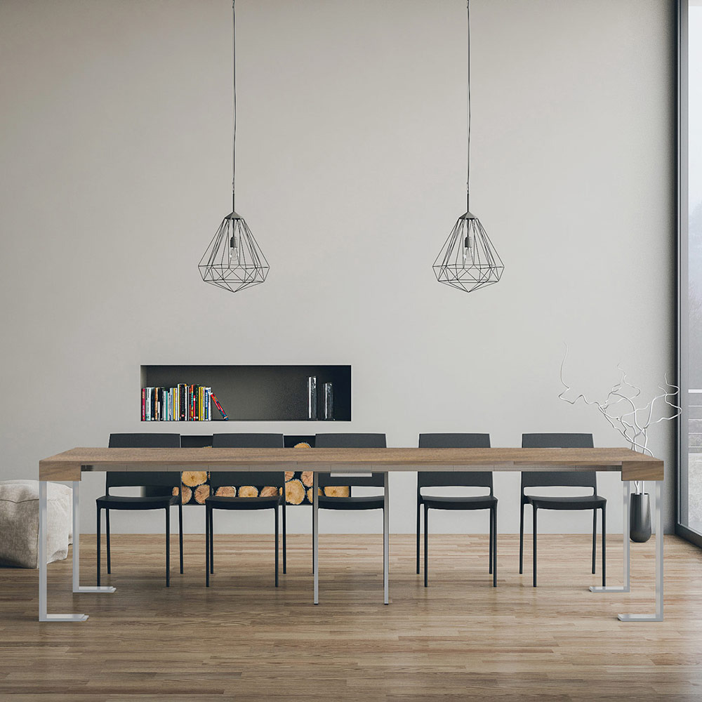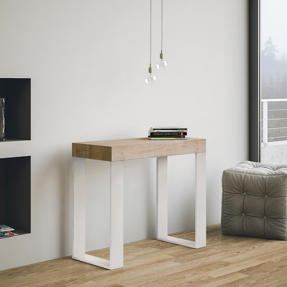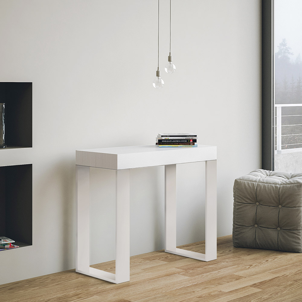 Den främsta egenskapen hos detta konsolbord är dess förmåga att förlängas, vilket gör att du kan förvandla det från en tunn, diskret möbel till ett mer rymligt och mysigt bord. Detta gör det idealiskt för små eller multifunktionella utrymmen, där varje centimeter är värdefull.