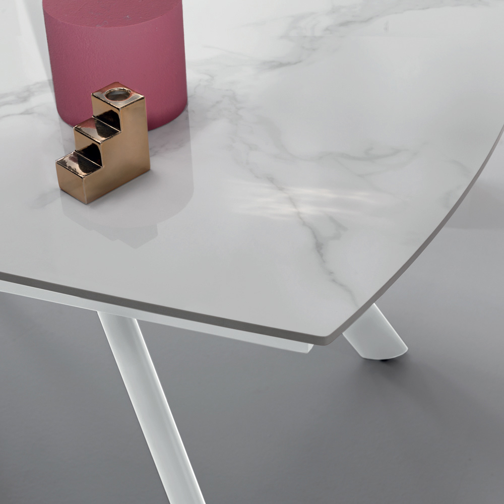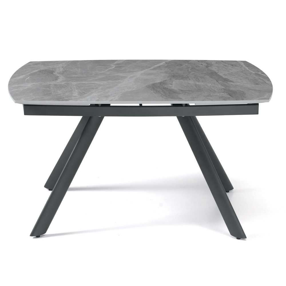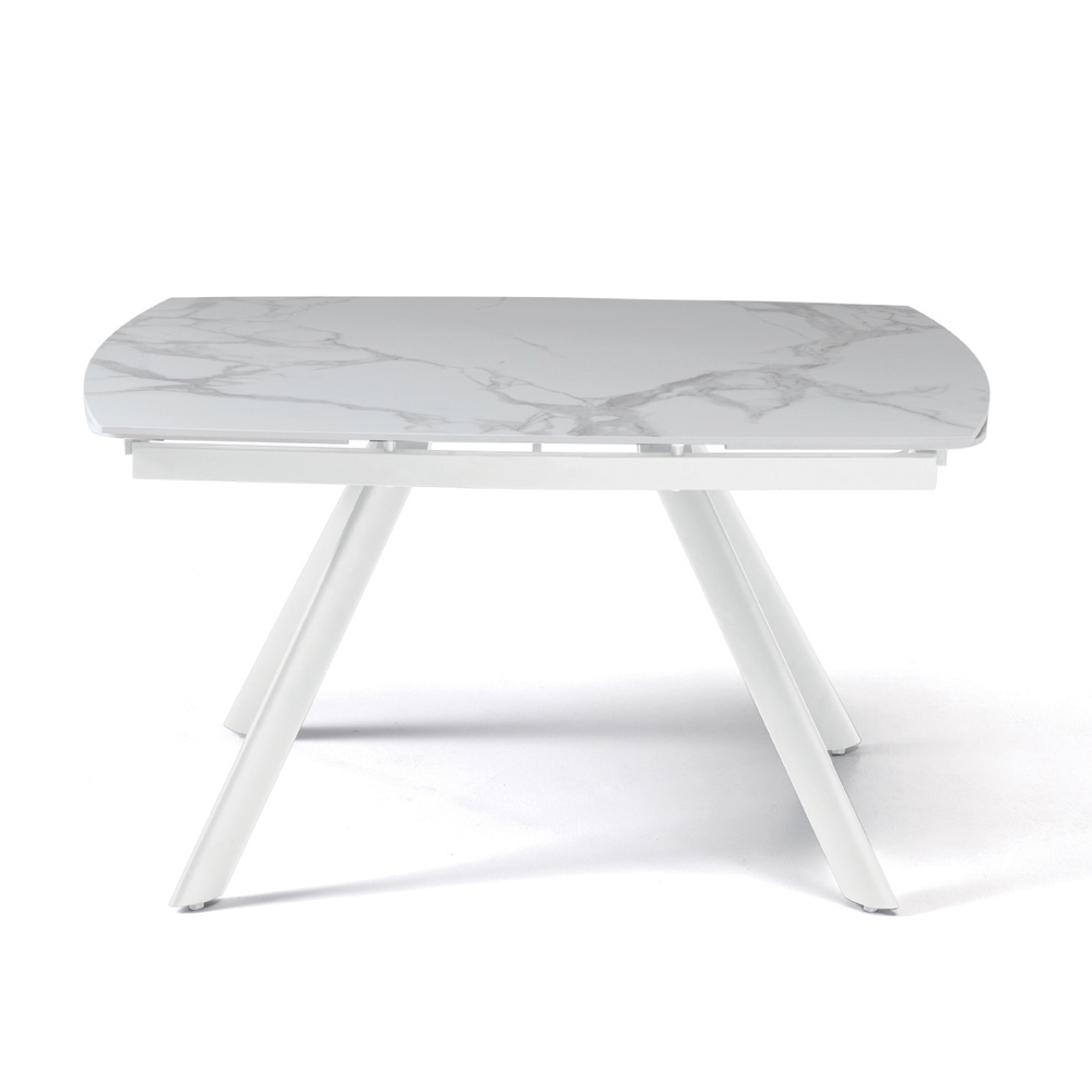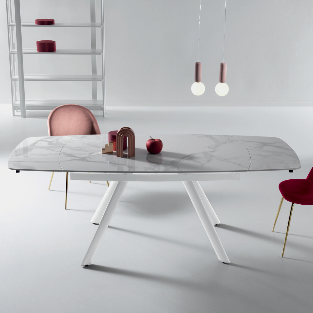 Elegant utdragbart matbord med modern design, perfekt för att elegant inreda din matsal eller vardagsrum . Den sintrade stenskivan med marmoreffekt erbjuder en raffinerad, hållbar och lättrengjord yta, perfekt för vardagsbruk. Den målade metallbasen ger stabilitet och soliditet till strukturen, vilket skapar en perfekt balans mellan modern estetik och funktionalitet.