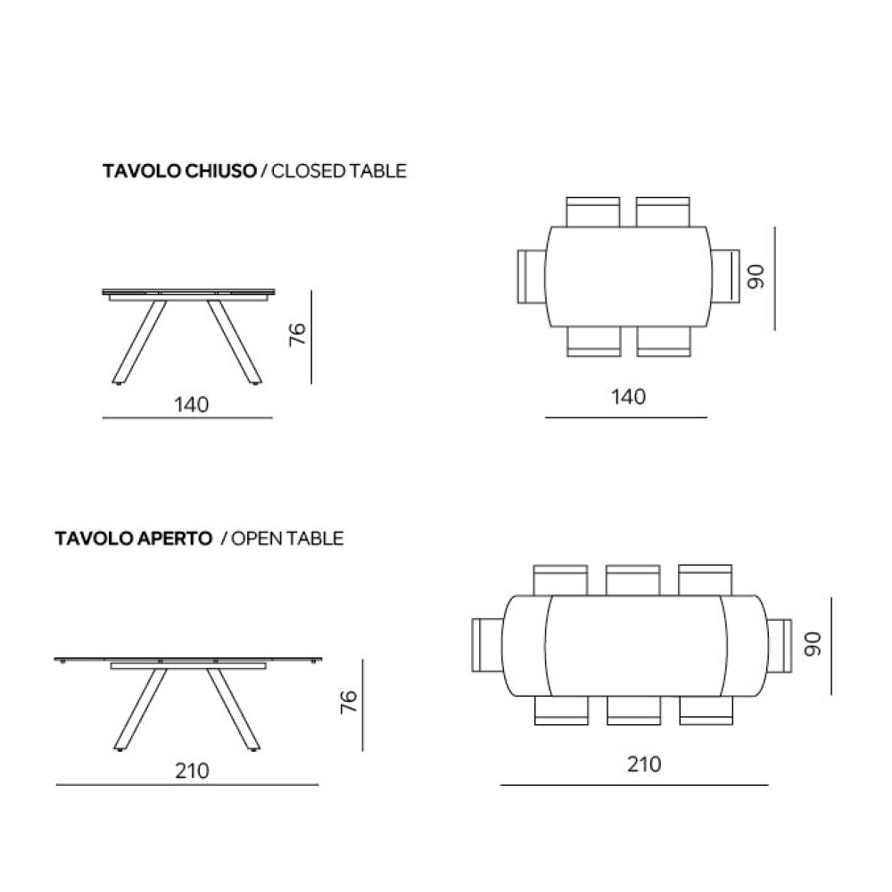 Bordet har två sidoförlängningar på 35 cm som gör att du enkelt kan öka bordsytan från 140 cm till 210 cm . Denna funktion gör det idealiskt för både vardagsbruk och för att ta emot större gäster under trevliga luncher och middagar, och kan enkelt anpassas till olika utrymmesbehov.