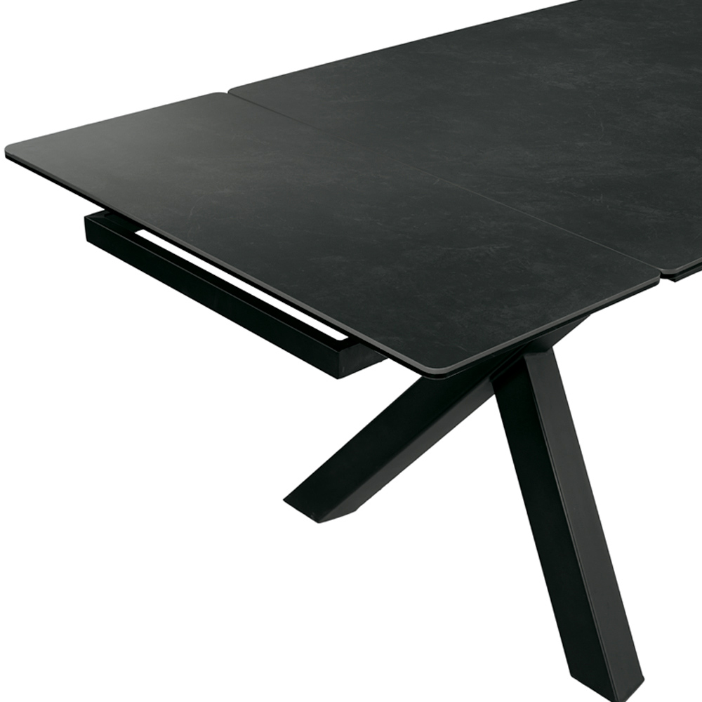 Detta moderna bord är utformat för att förhöja matplatsen med en elegant och djärv stil. Keramik- och glasskivan kombinerar estetik och funktionalitet och erbjuder en reptålig, värmebeständig och fläckbeständig yta, perfekt för vardagligt bruk utan att offra elegans.
