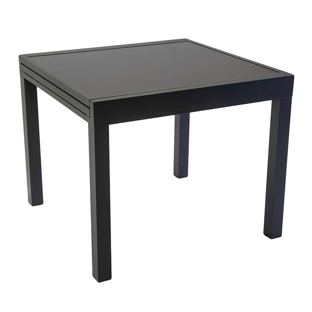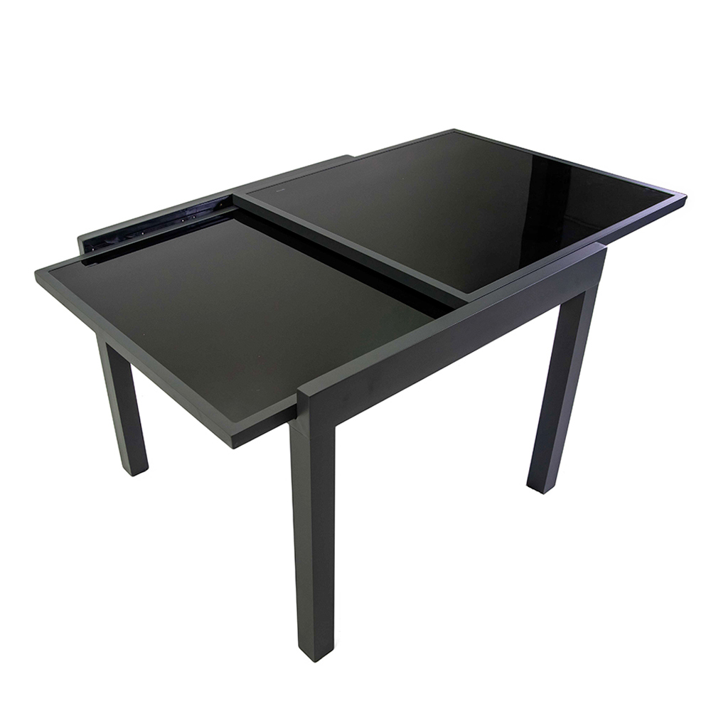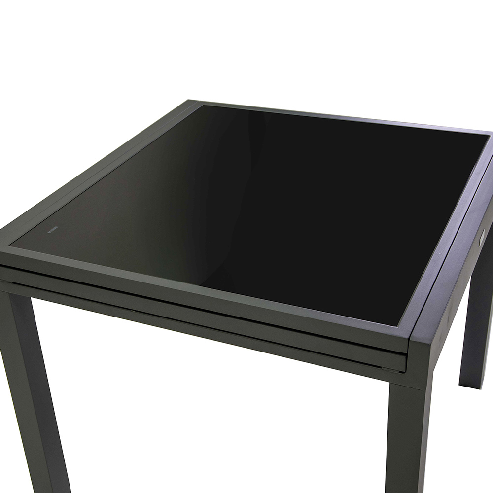 Detta förlängningsbara aluminiumbord med härdad glasskiva är perfekt för dig som letar efter funktionalitet och stil i en enda produkt. Detta eleganta och moderna bord utmärker sig för sin finish som passar perfekt till både inomhus- och utomhusmiljöer.