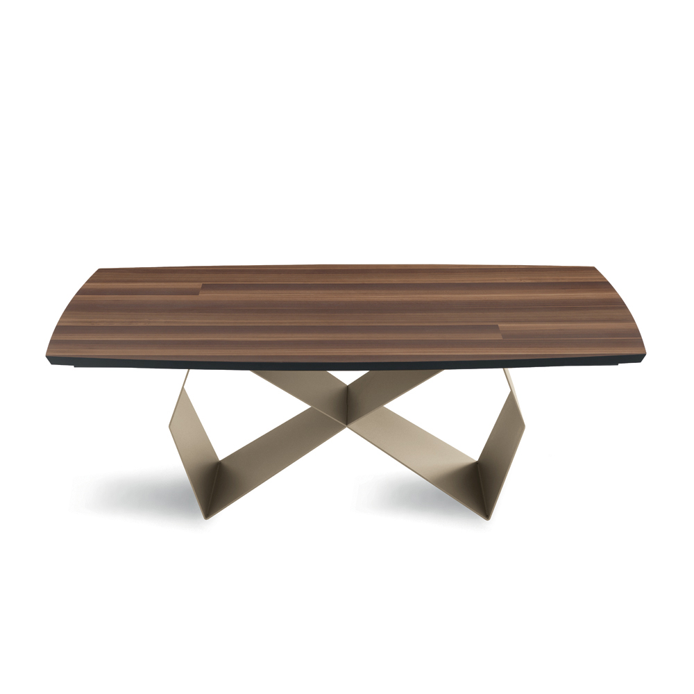 Detta matbord är perfekt för alla moderna vardagsrum. Bordsskivan, gjord av fin ekfaner, tillför inte bara en organisk värme till miljön, utan är också känd för sin styrka och hållbarhet, vilket gör den idealisk för dagligt bruk.