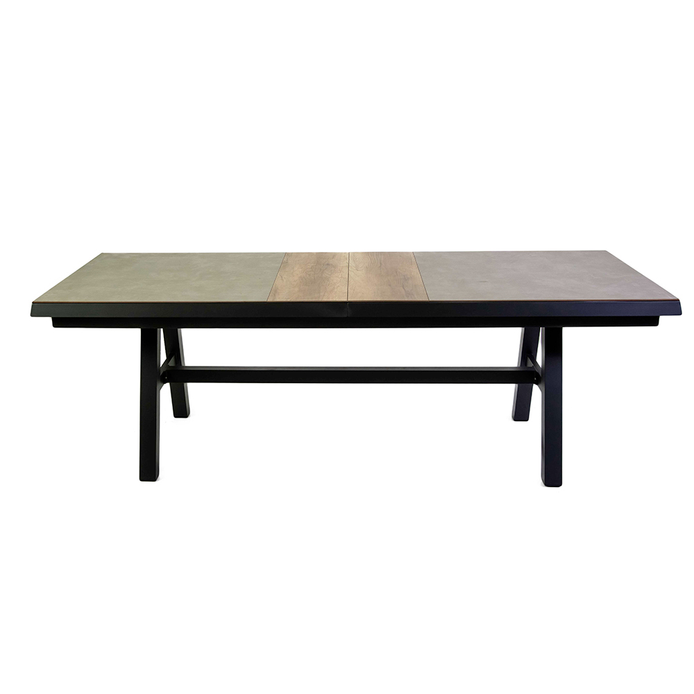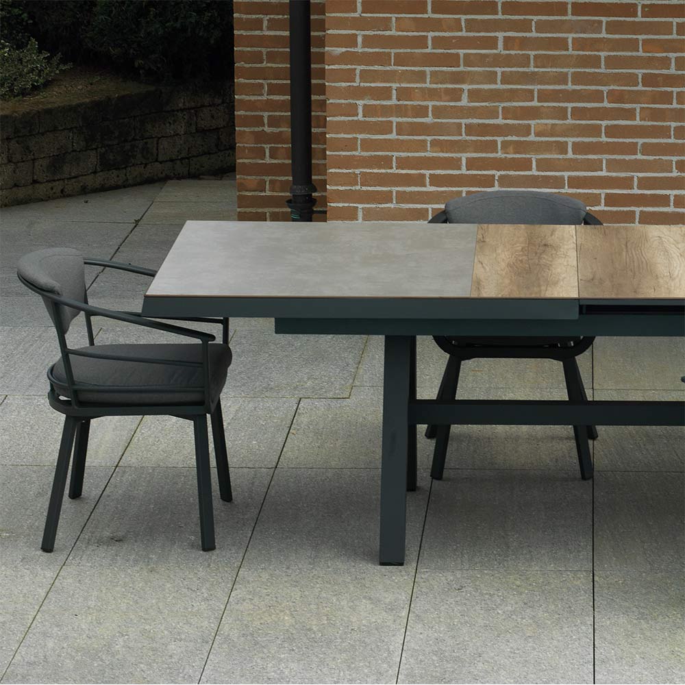 automatisk central förlängning-systemet gör detta bord extremt praktiskt, så att du enkelt kan anpassa det till antalet gäster. Denna funktion, i kombination med dess rena design och robusta konstruktion, gör bordet till ett måste för alla som tycker om att underhålla utomhus.
