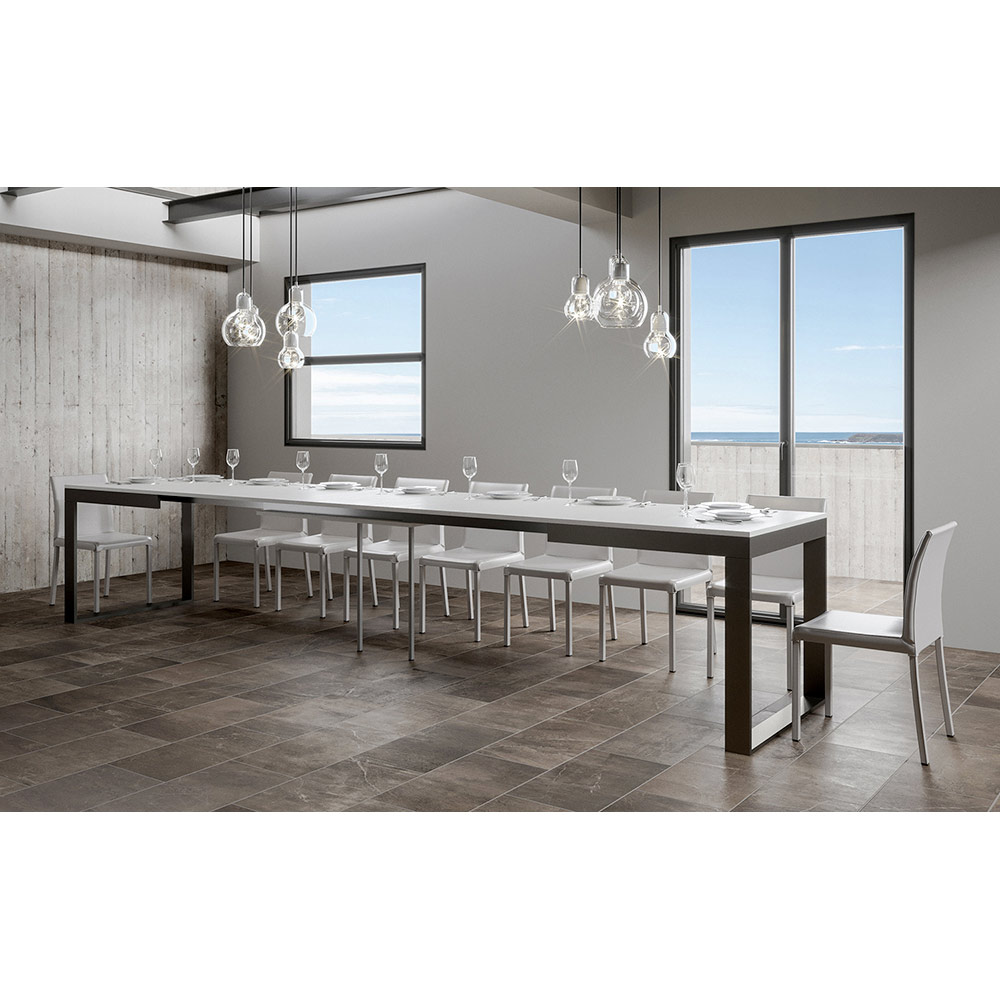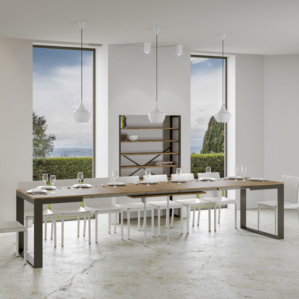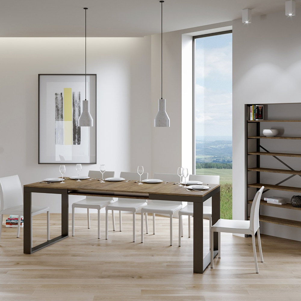 Detta bord utmärker sig för sin mångsidighet, tack vare den smarta mekanismen som gör att det enkelt kan förlängas, vilket förvandlar det från ett bekvämt bord till ett generöst bord som kan rymma flera gäster. È det är perfekt för dem som gillar att underhålla vänner och familj eller för dem som behöver anpassningsbarhet i multifunktionella miljöer.