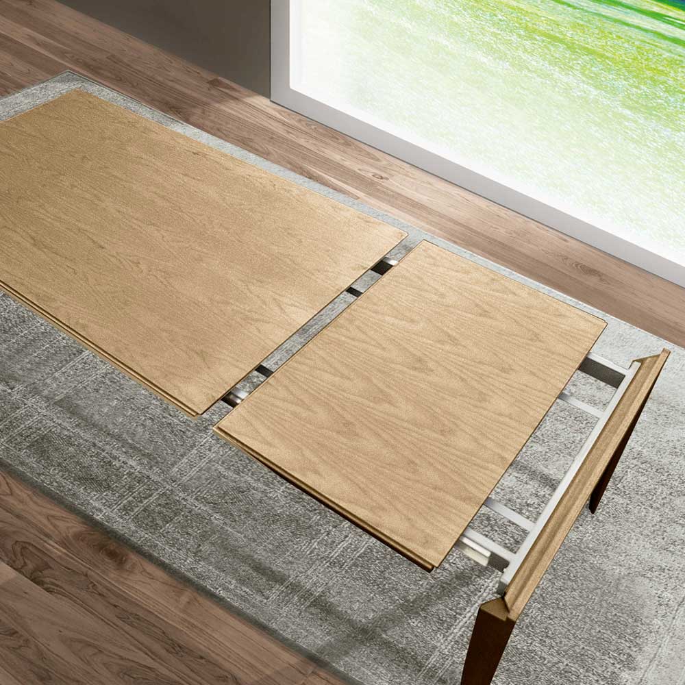 Detta utdragbara bord personifierar grundläggande design och kombinerar funktionalitet och modern elegans . Tillverkat av trä framhäver det ådringens naturliga skönhet , vilket gör varje möbel unik och autentisk. De smala linjerna och den rena geometriska formen passar perfekt in i moderna utrymmen, medan den utdragbara strukturen möjliggör en enkel övergång från vardagsbruk till större sammankomster, utan att offra stilen. Den avsmalnande skivan och benen ger visuell lätthet och stabilitet, vilket förvandlar detta bord till en sann mittpunkt i vardagsrummet eller matsalen. En perfekt balans mellan italienskt tillverkad elegans , mångsidighet och tidlös design .