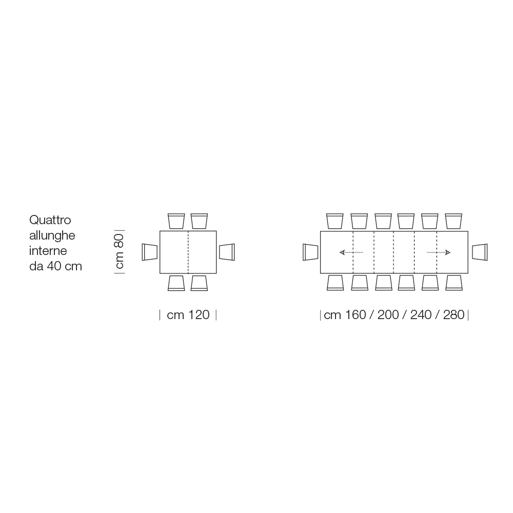 - L 120 (280) x D 80 x H 77 cm 14-sits utdragbar med fyra 40 cm invändiga förlängningar;