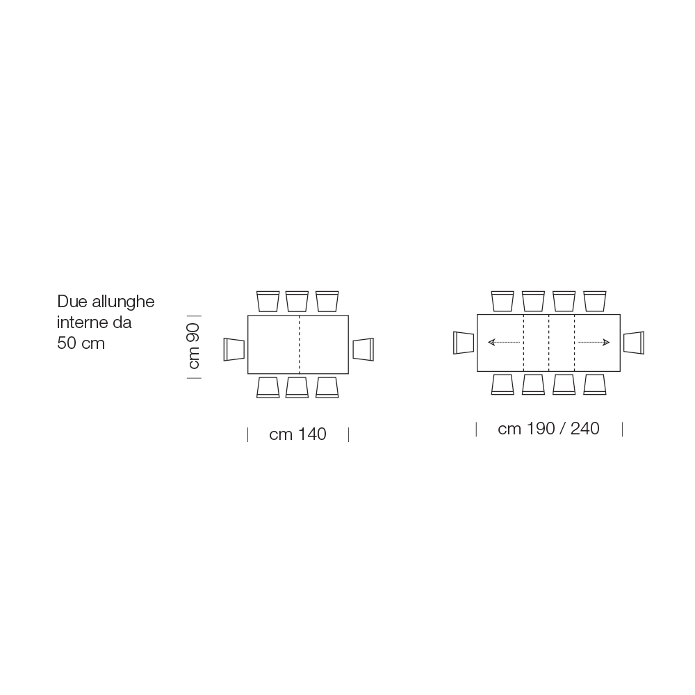 - L 140 (240) x D 90 x H 77 cm 10-sits utdragbar med två invändiga förlängningar på 50 cm vardera;
