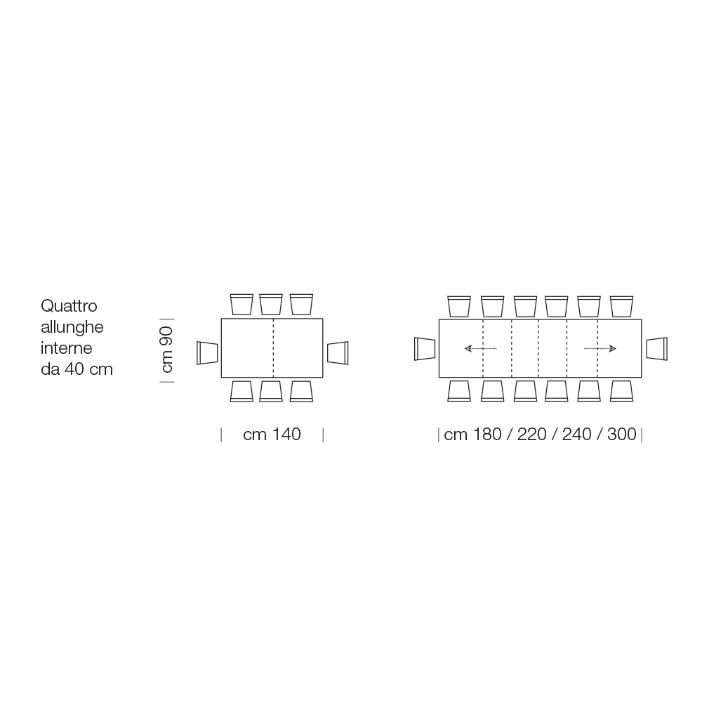 - L 140 (300) x D 90 x H 77 cm 14-sits utdragbar med fyra 40 cm invändiga förlängningar;