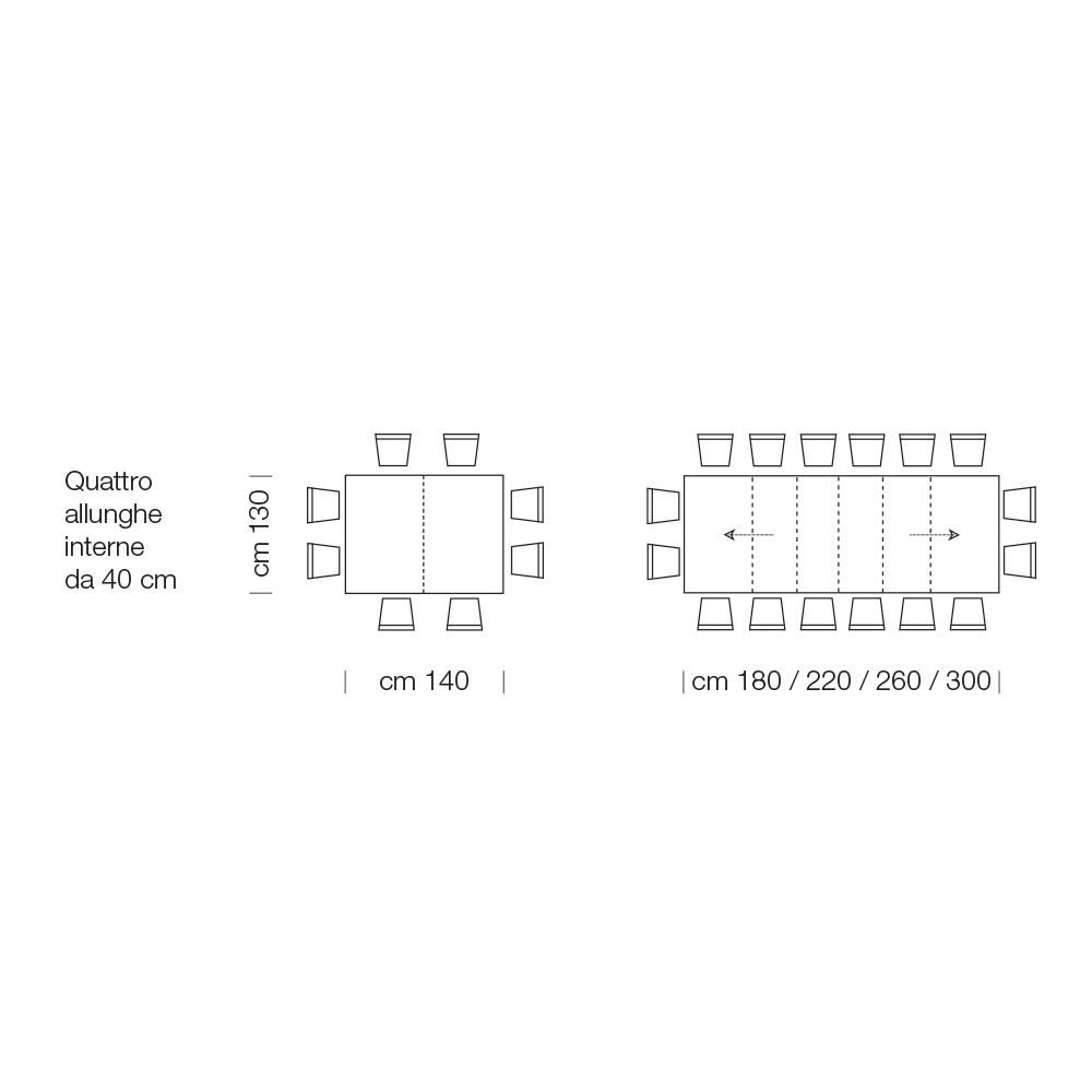 - L 140 (410) x D 90 x H 77 cm 18-sits utdragbar med sex 45 cm förlängningar, tre invändiga och tre levereras i en återanvändbar kartong;