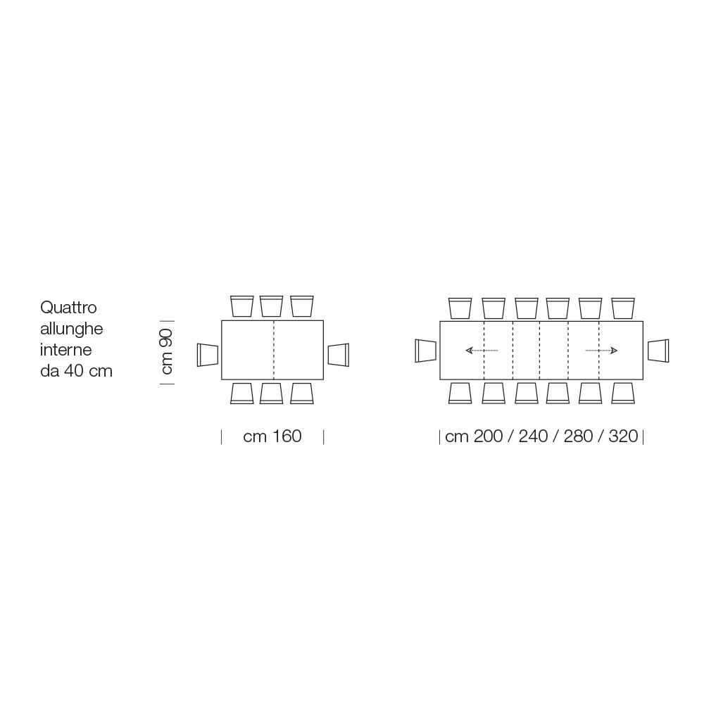- L 160 (320) x D 90 x H 77 cm 14-sits utdragbar med fyra 40 cm invändiga förlängningar;