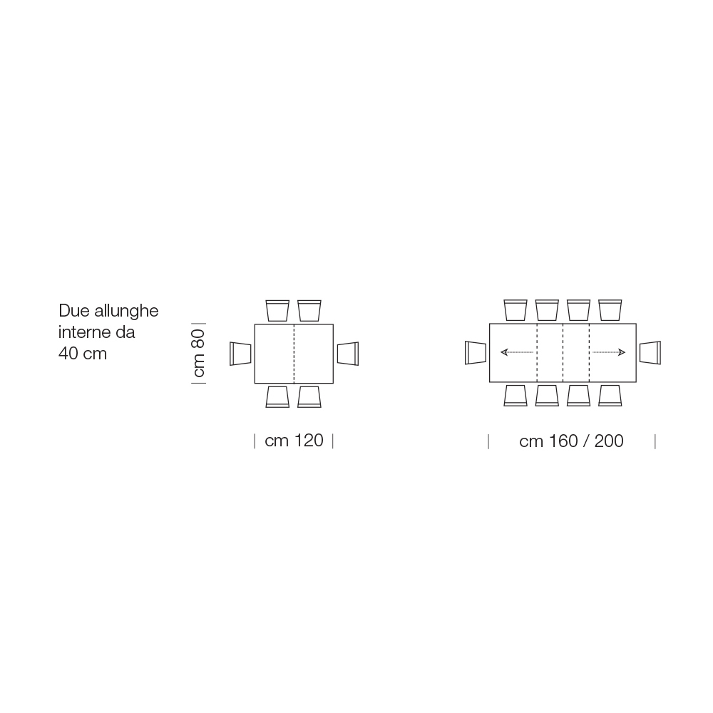 - L 120 (200) x D 80 x H 77 cm 10-sits utdragbar med två 40 cm invändiga förlängningar;