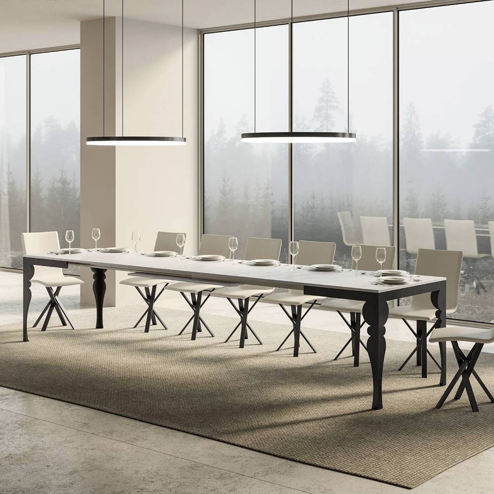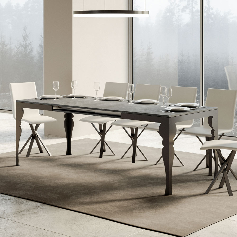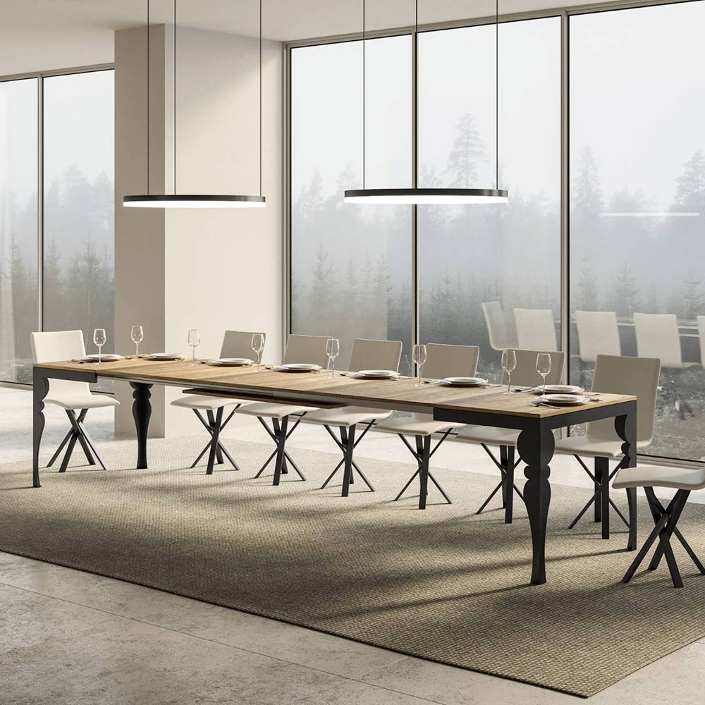 Detta utdragbara bord är ett exempel på utsökt hantverk, där traditionell design möter modern funktionalitet. Med sina svarvade ben i en elegant antracit framkallar detta bord den klassiska stilen, men med en touch av modern sofistikering tack vare dess träskiva.
