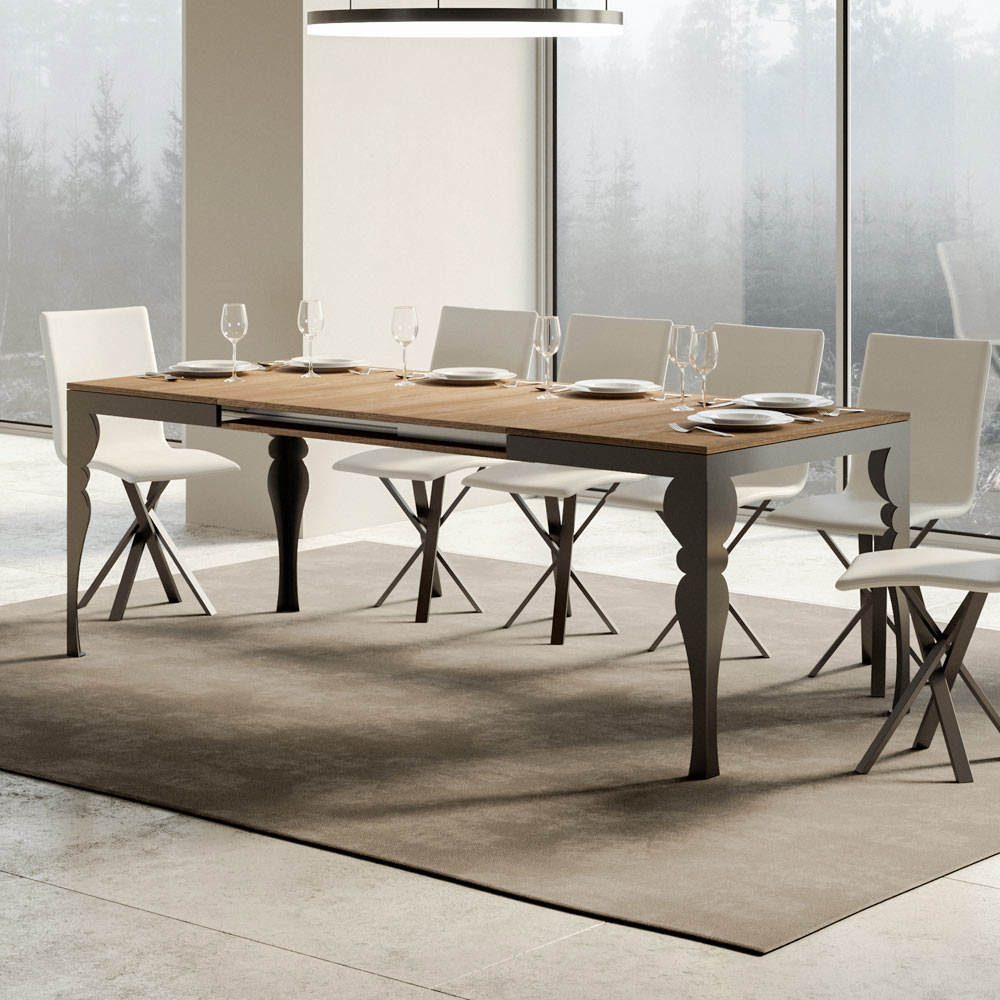 Möjligheten att utöka med lätthet gör det till en extremt flexibel möbel som kan anpassas till alla situationer, från dagliga familjemåltider till stora festmiddagar. Dess dubbla karaktär gör att den kan förvandla alla utrymmen från intima till rymliga och alltid erbjuda en elegant och funktionell lösning.