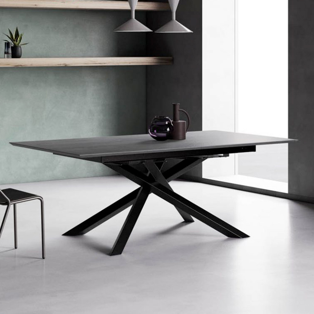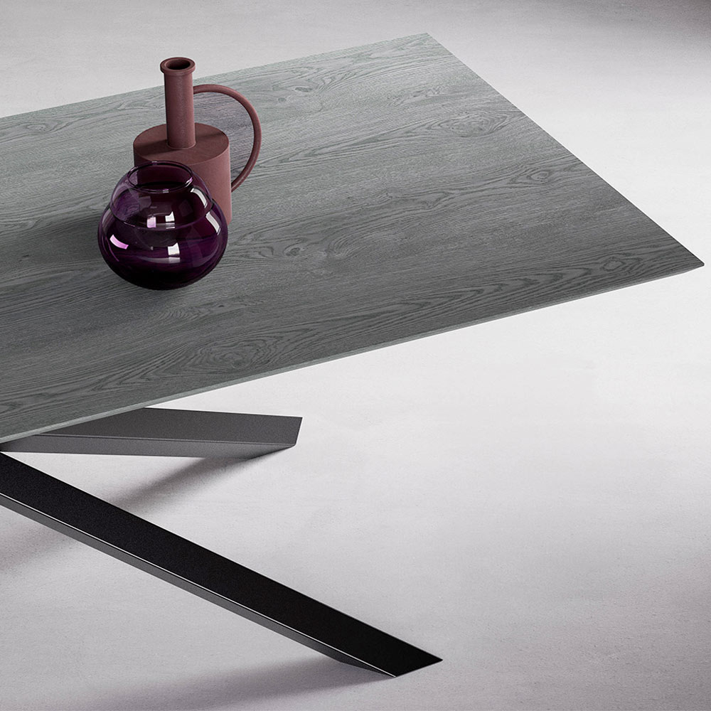 Utdragbart bord med grå ekskiva och grafitben Tillverkat i Italien.