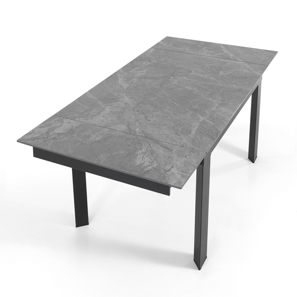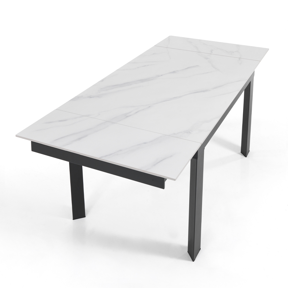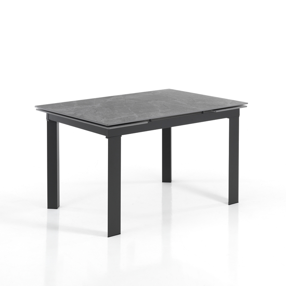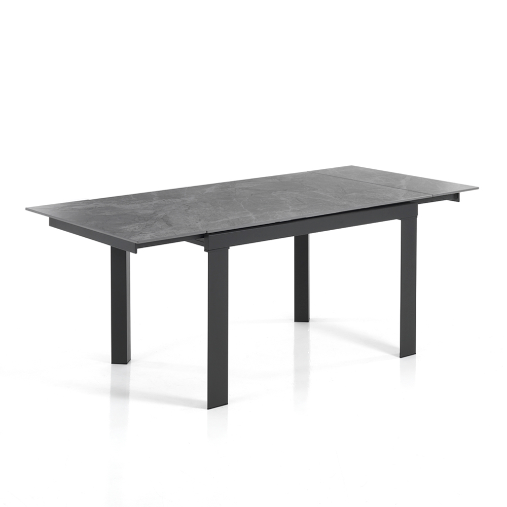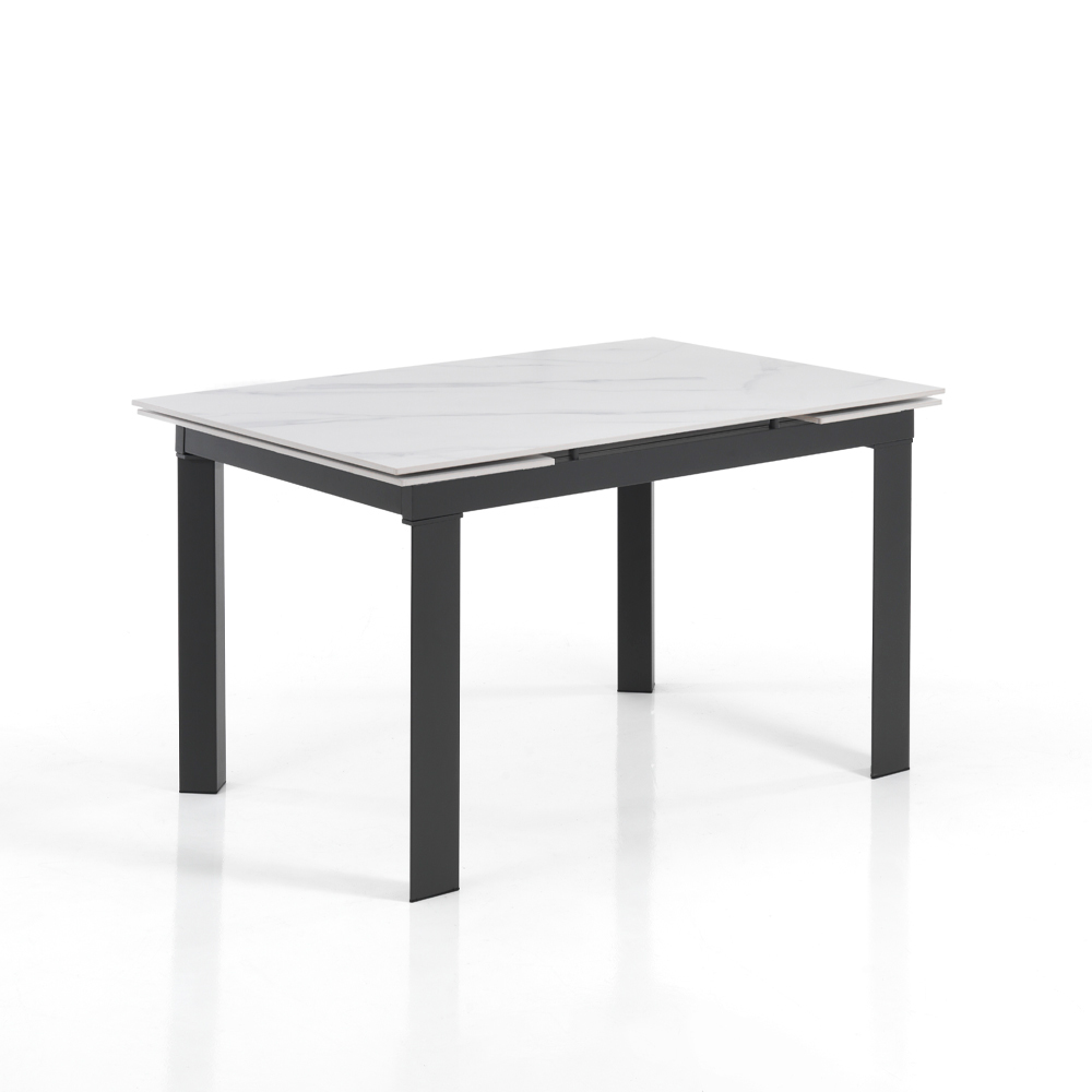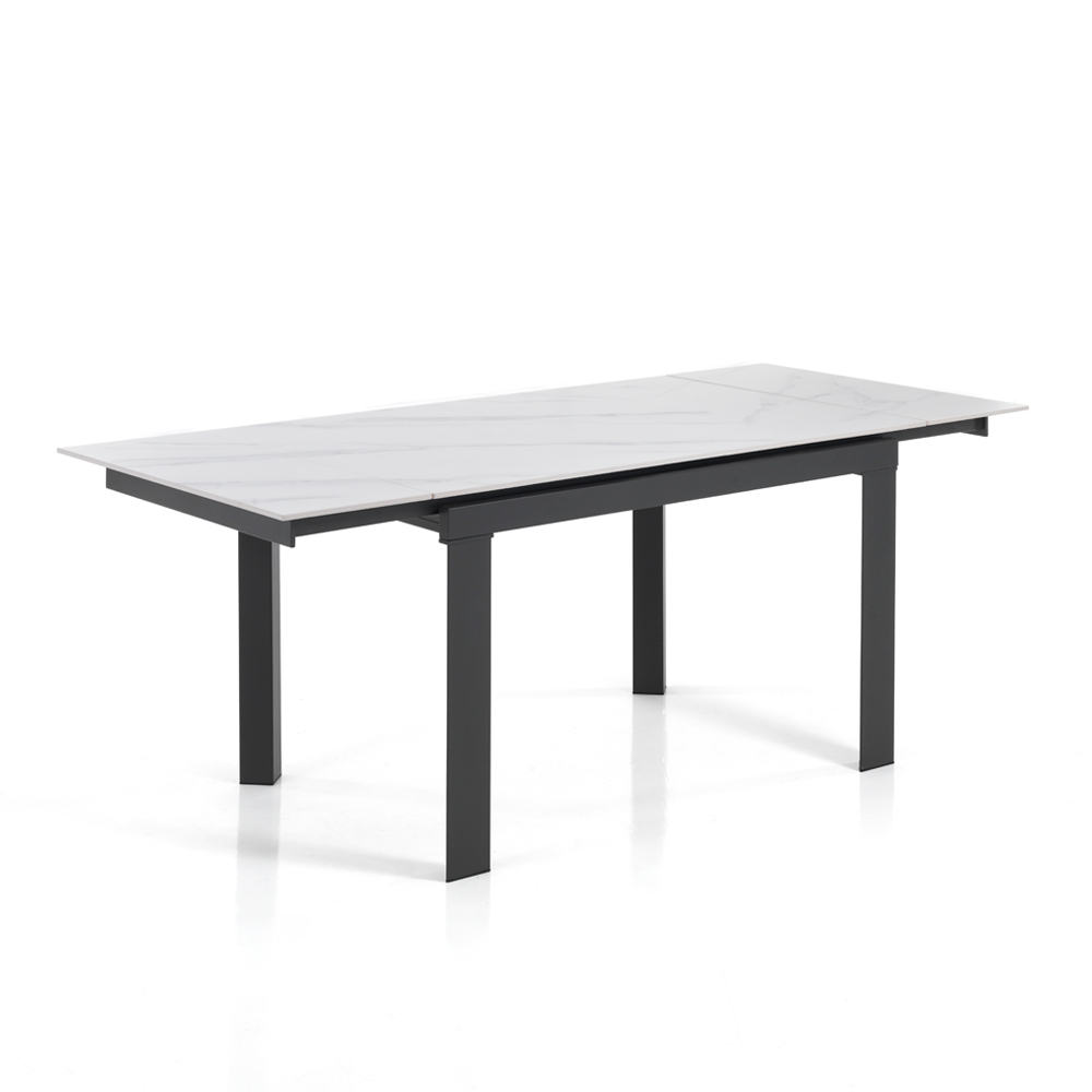 Utdragbart vardagsrumsbord i stål och keramik
