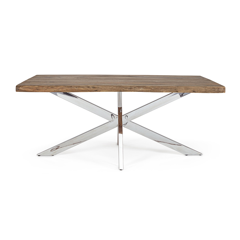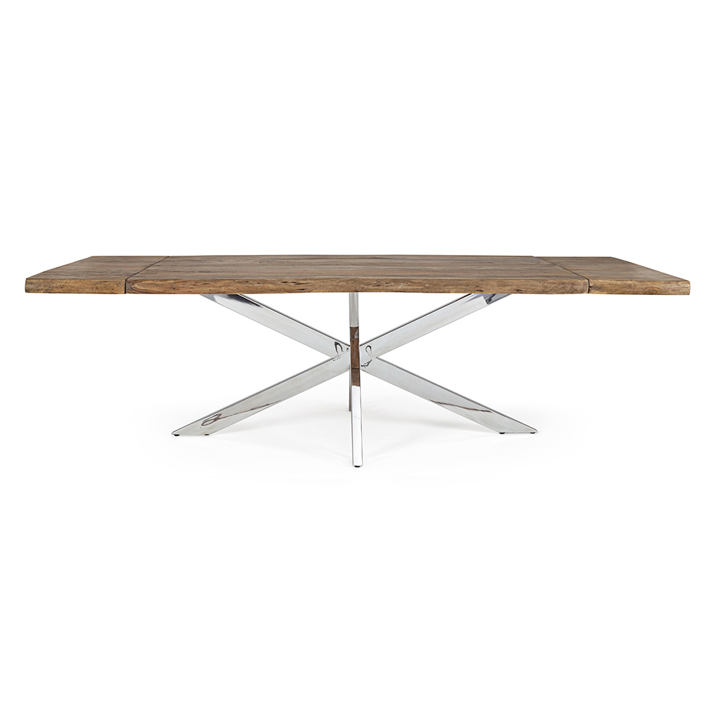 Utdragbart matbord i massivt akaciaträ och stålfot, 10 personer.