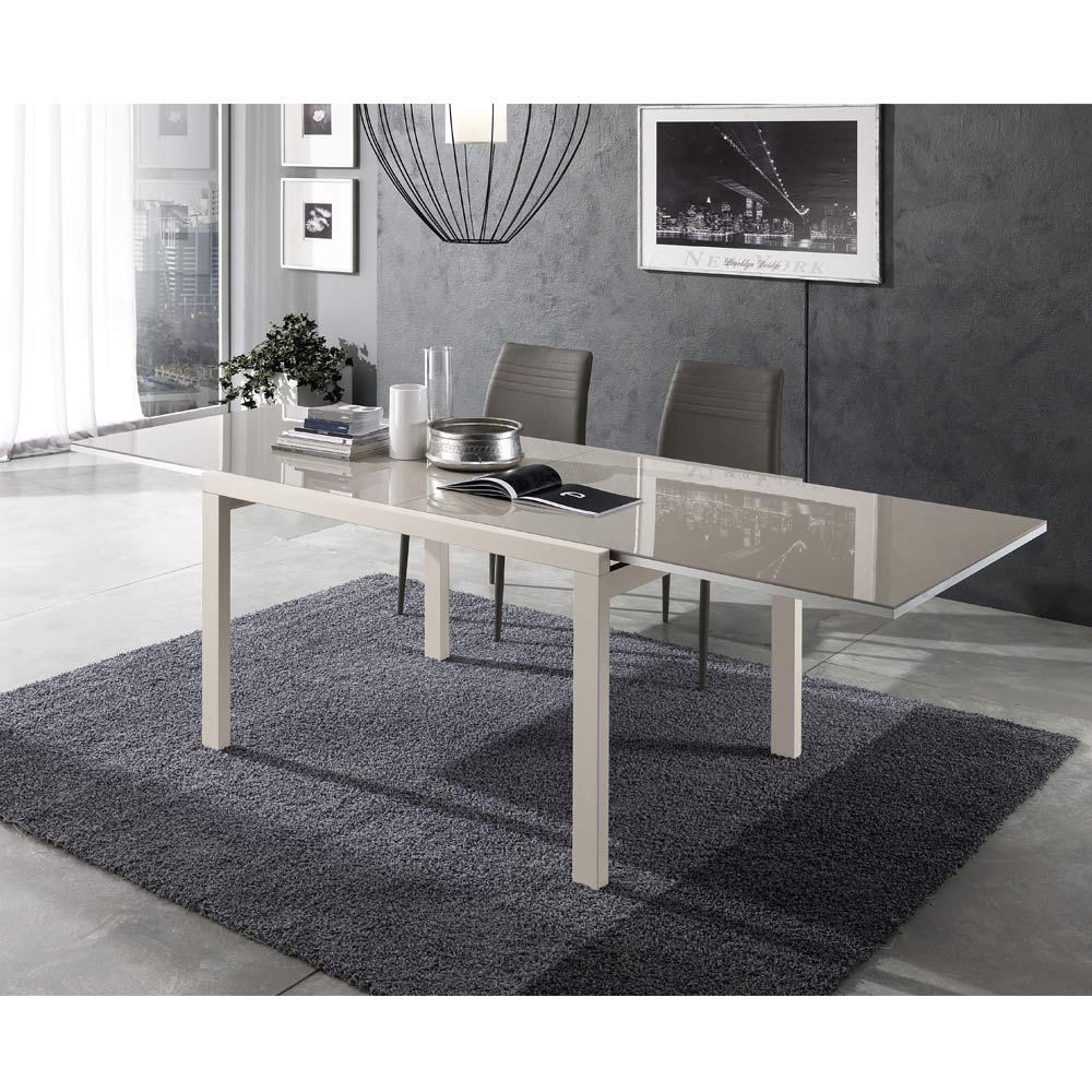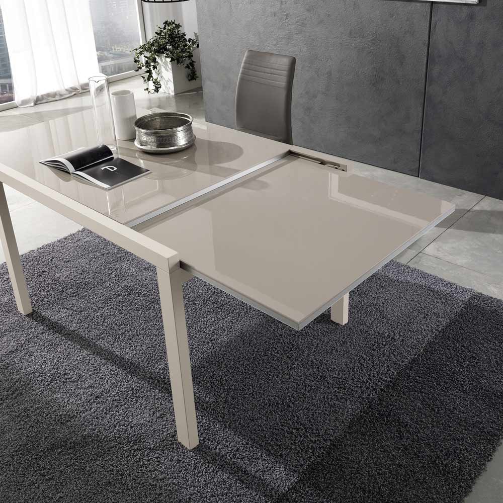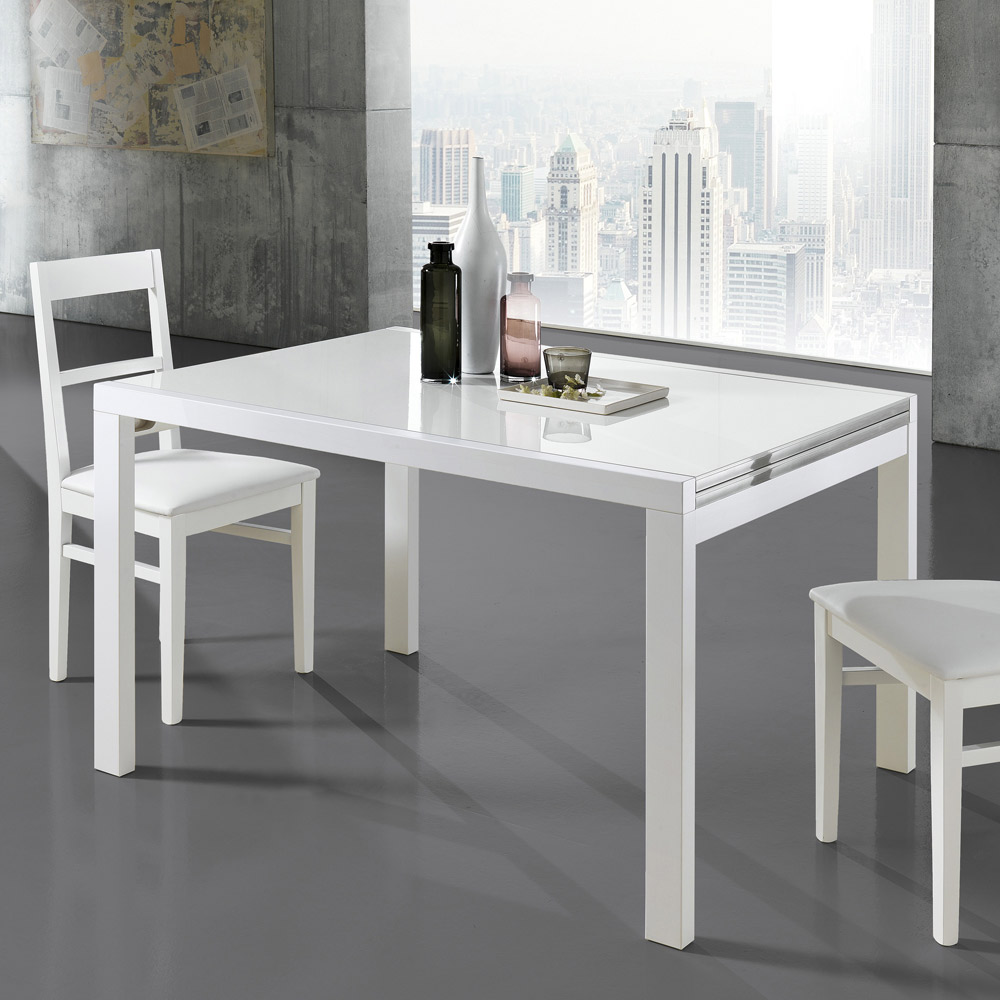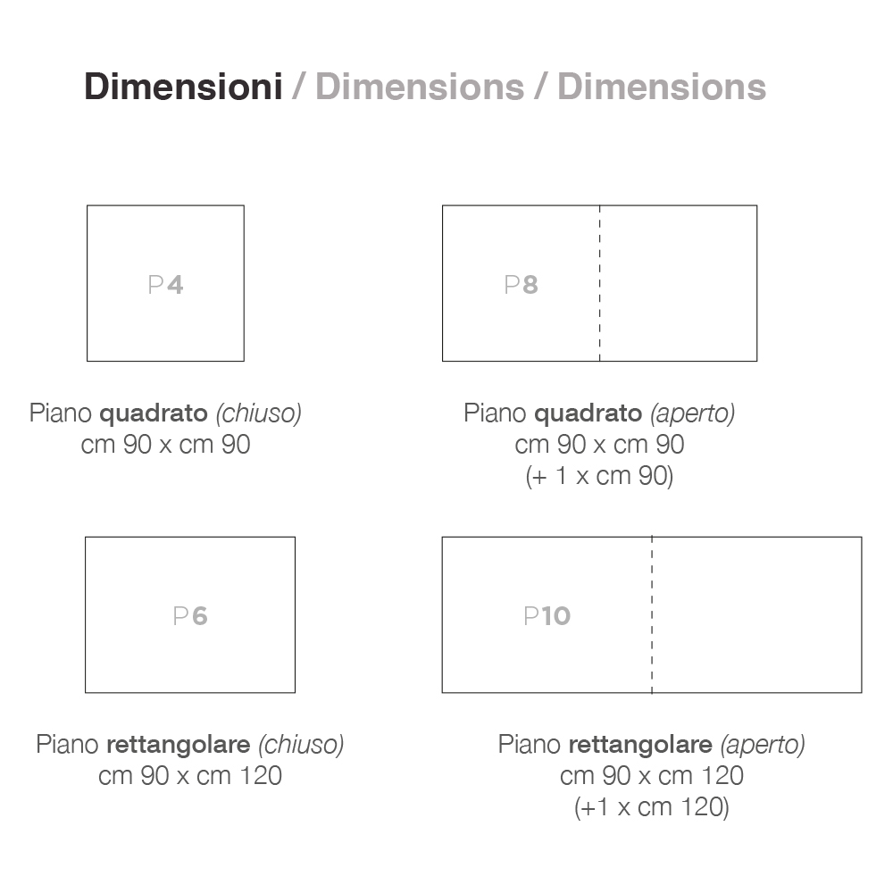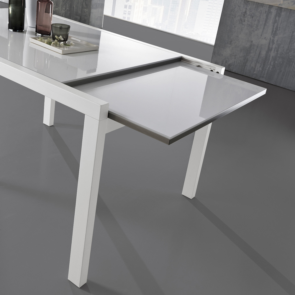 glaseffektlackerad träskiva. Dess praktiska öppningsmekanism ökar dess yta vilket gör att den bekvämt kan ta emot många människor. En produkt med en unik stil som lyckas strikt kombinera design, aktualitet och teknik; varje enskilt element är starkt karakteriserat och utrustad med en originell och högt definierad personlighet.