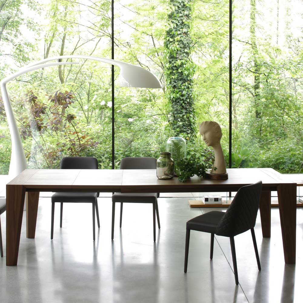 Made in Italy. Bordet uttrycker naturens essens genom dess Canaletto-valnötsfinish, som finns både på toppen och på benen. Denna imponerande och raffinerade möbel erbjuder mångsidighet med sin utdragbara funktion, så att du kan välja mellan en version med en eller två förlängningar. Glidmekanismen, som är synlig även när bordet är förlängt, bibehåller en sammanhängande design som blandar estetik och funktionalitet. Det är mer än bara ett matbord, det är ett konstverk som hyllar naturens skönhet i ditt utrymme.