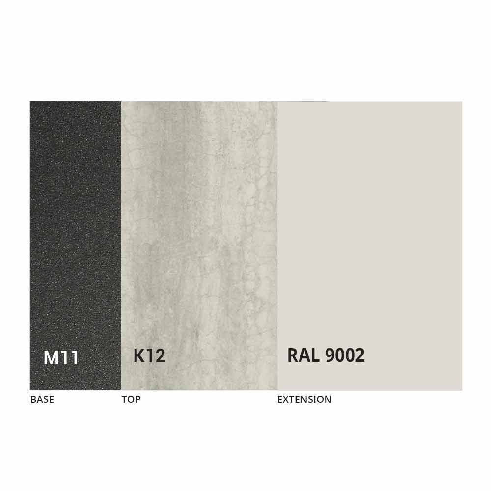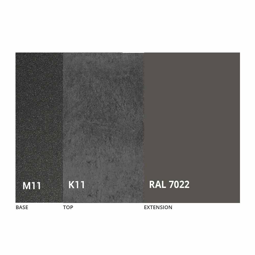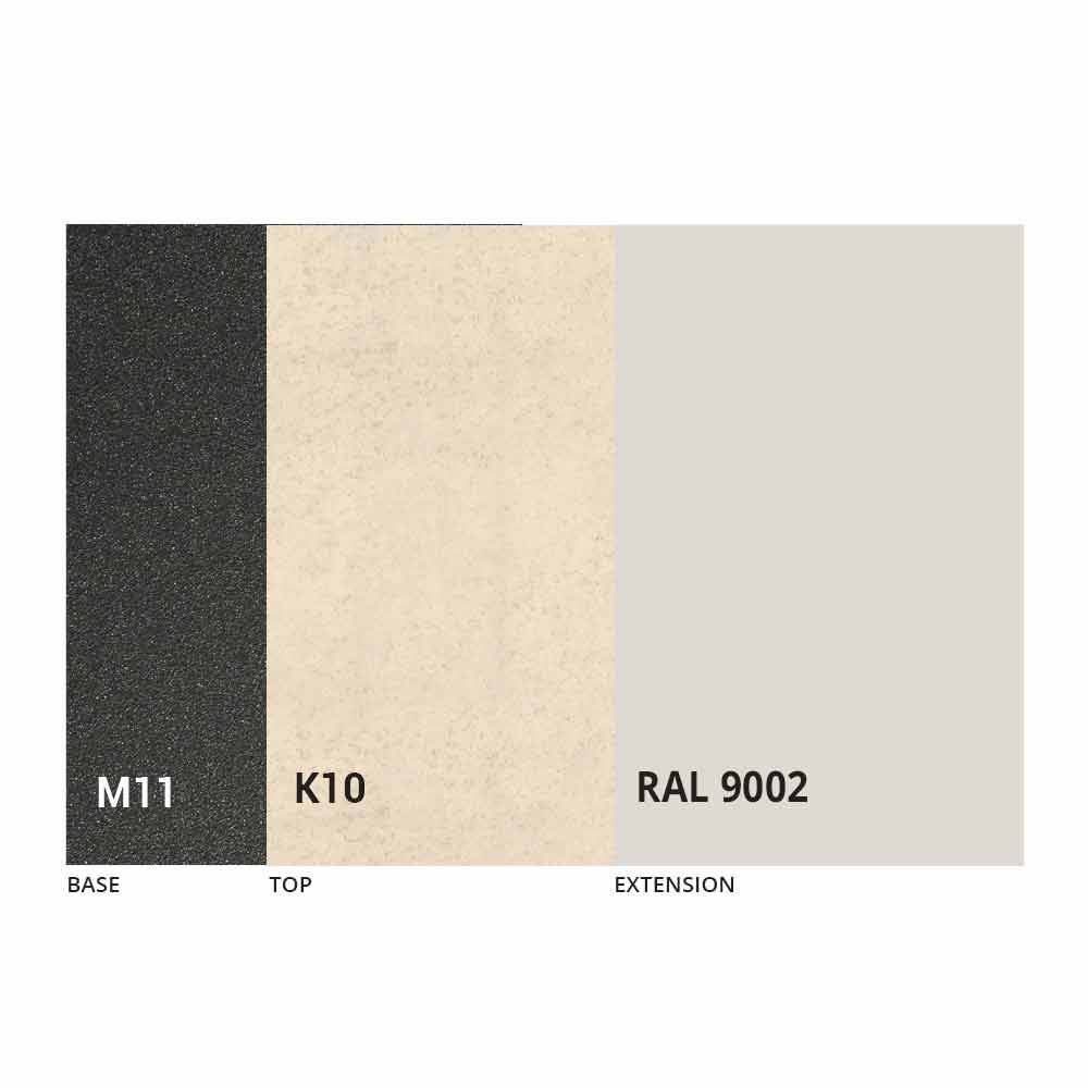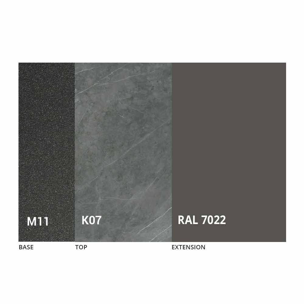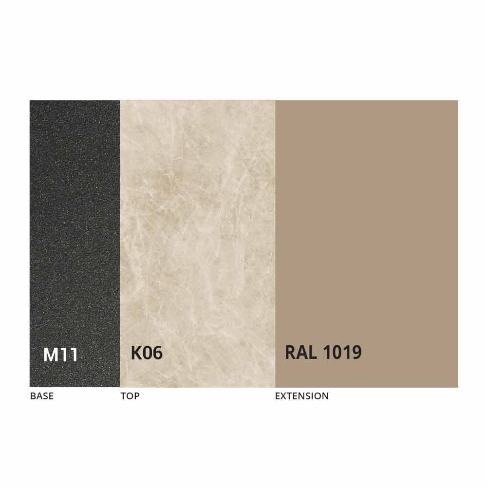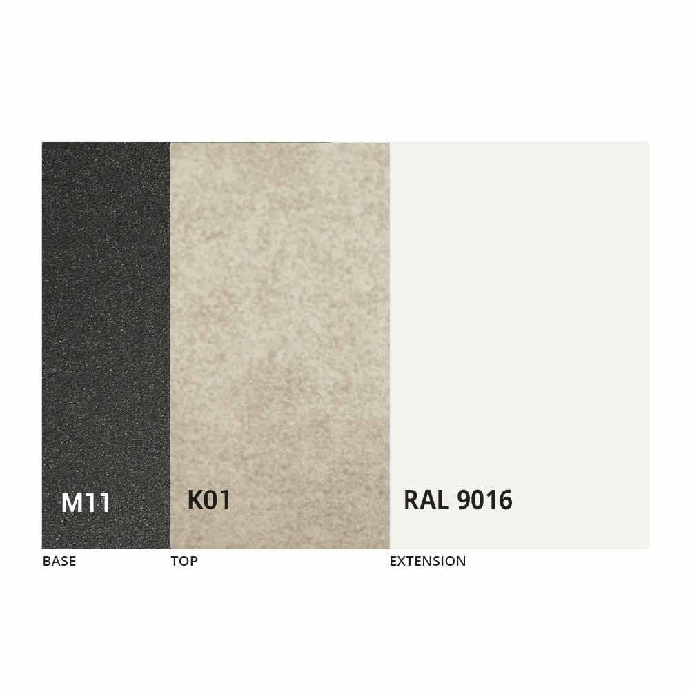 Bordsskivan och basen kan anpassas med olika material och provfinish eller RAL-lackering. För information, kontakta oss genom att använda det lämpliga formuläret "