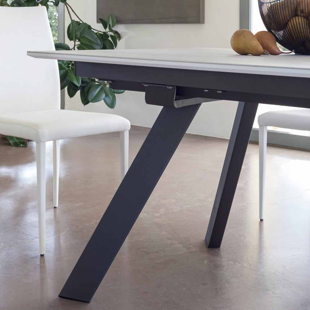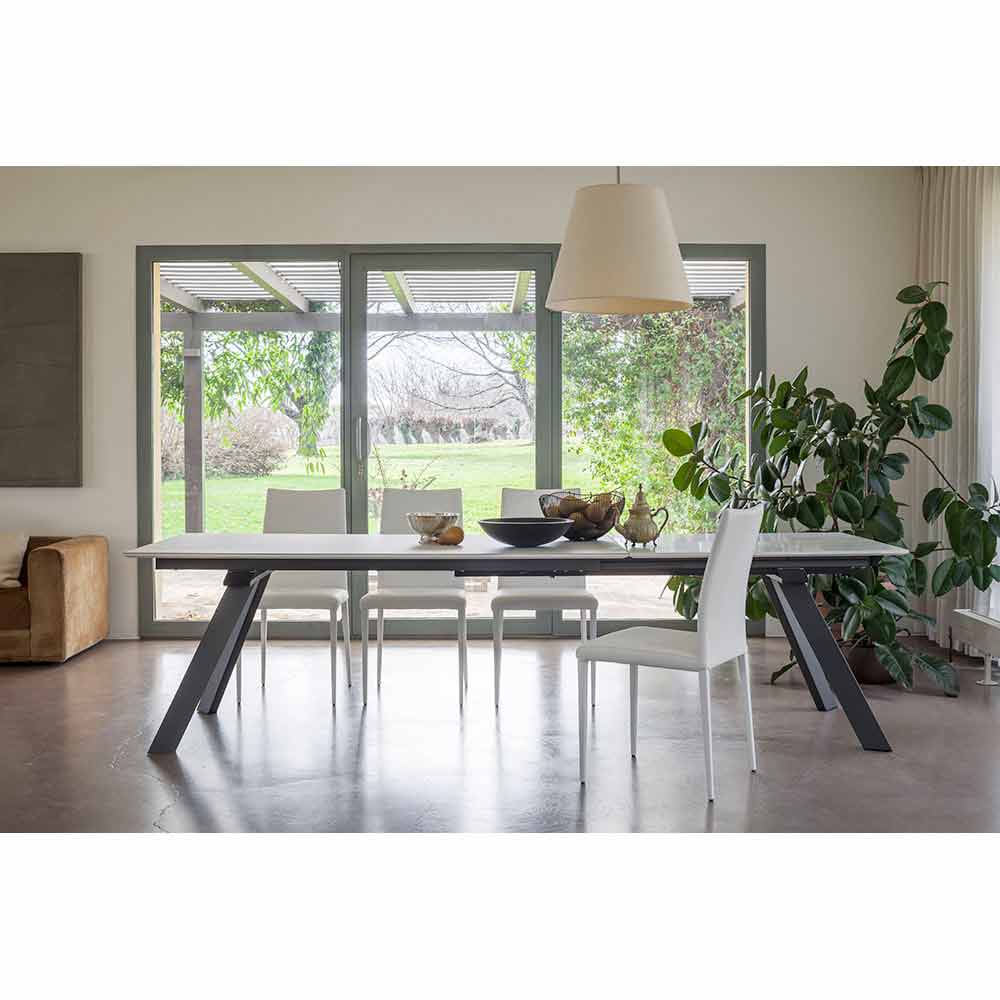 Utdragbart matbord i keramik och metallfot tillverkat i Italien.