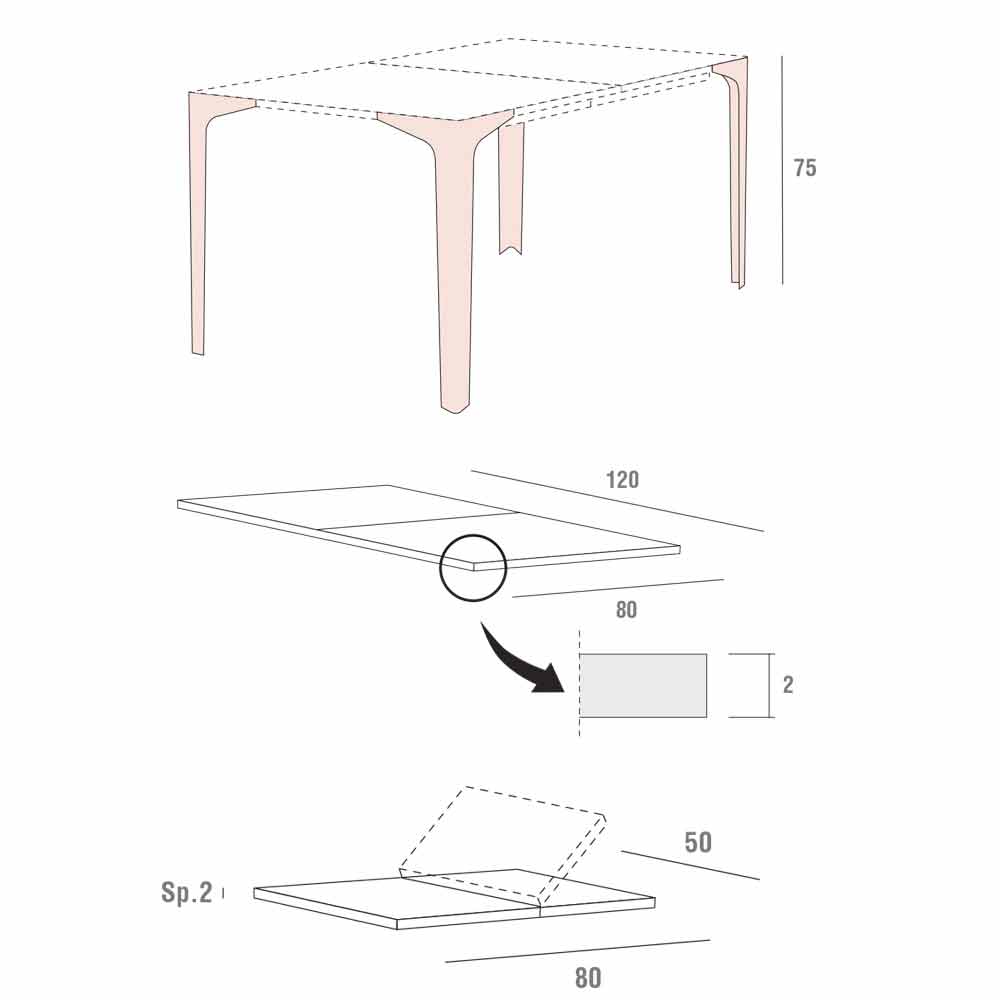 kännetecknas av möjligheten att förlänga stödytan upp till max 222 cm tack vare en förlängning i samma färg som toppen som gör att du kan ta emot ett större antal gäster för härliga luncher eller middagar i sällskap, vilket ökar dess