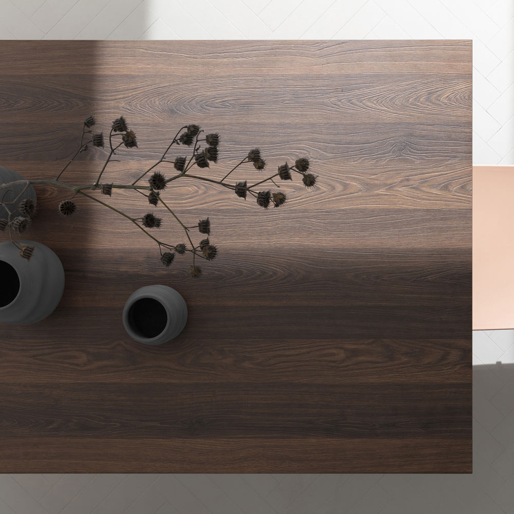 utdragbar hpl-skiva finns i olika utföranden och i två olika storlekar. Dess estetik fokuserar helt på en