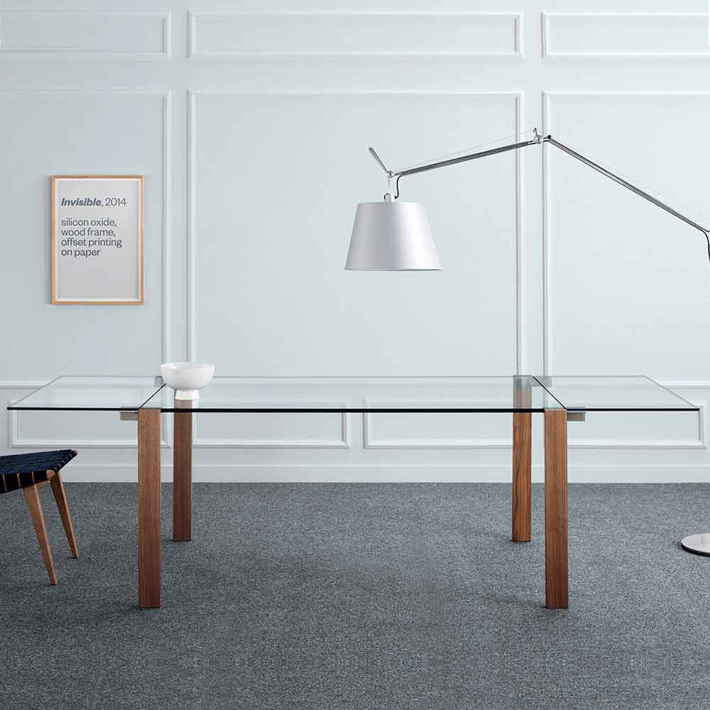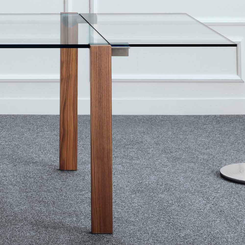 - topp och förlängningar i genomskinligt glas, ben i canaletto valnöt.