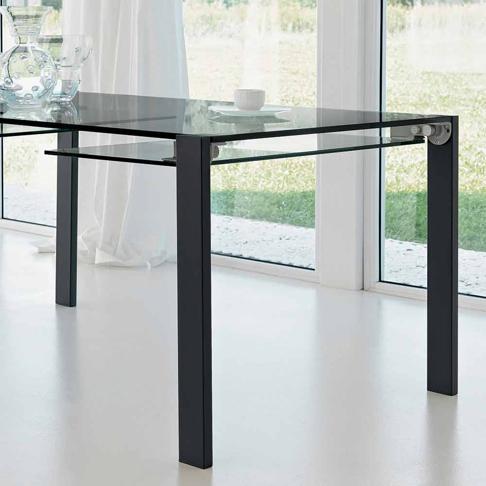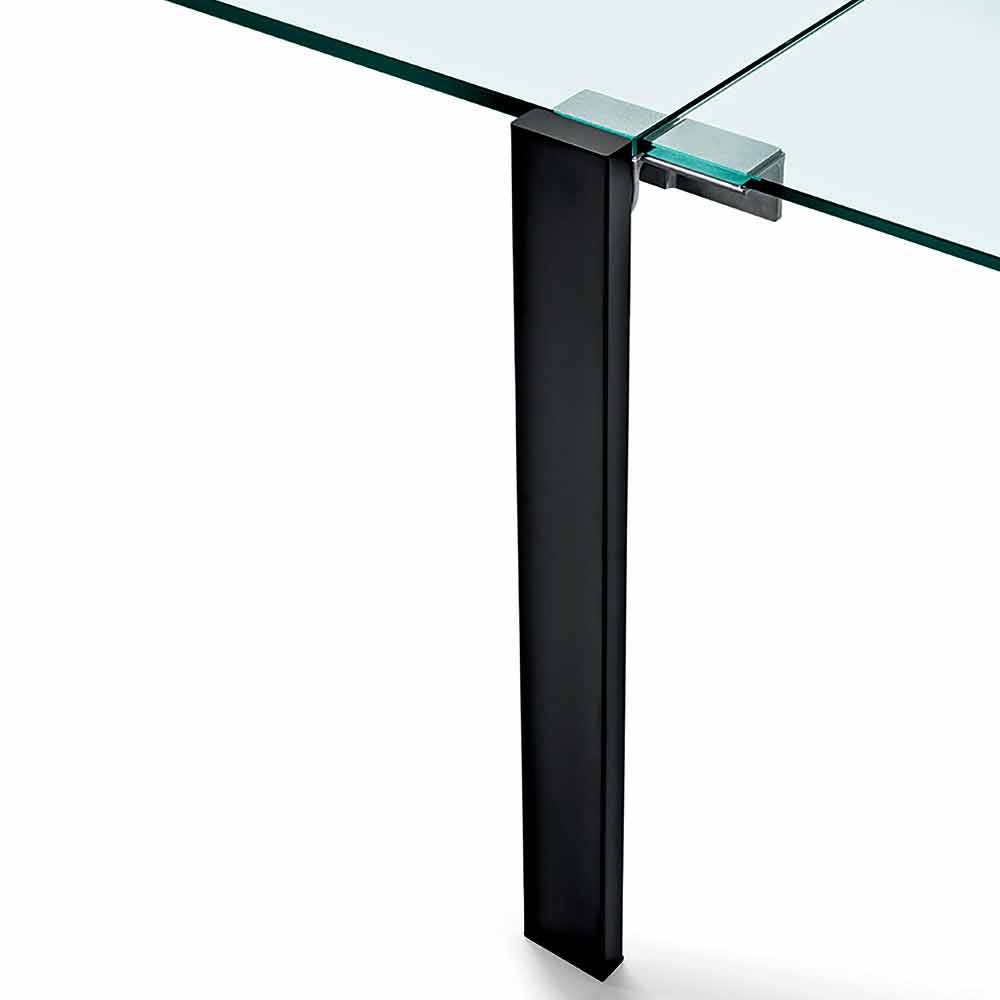 - topp och förlängningar i transparent glas, metallben målade matt svart;