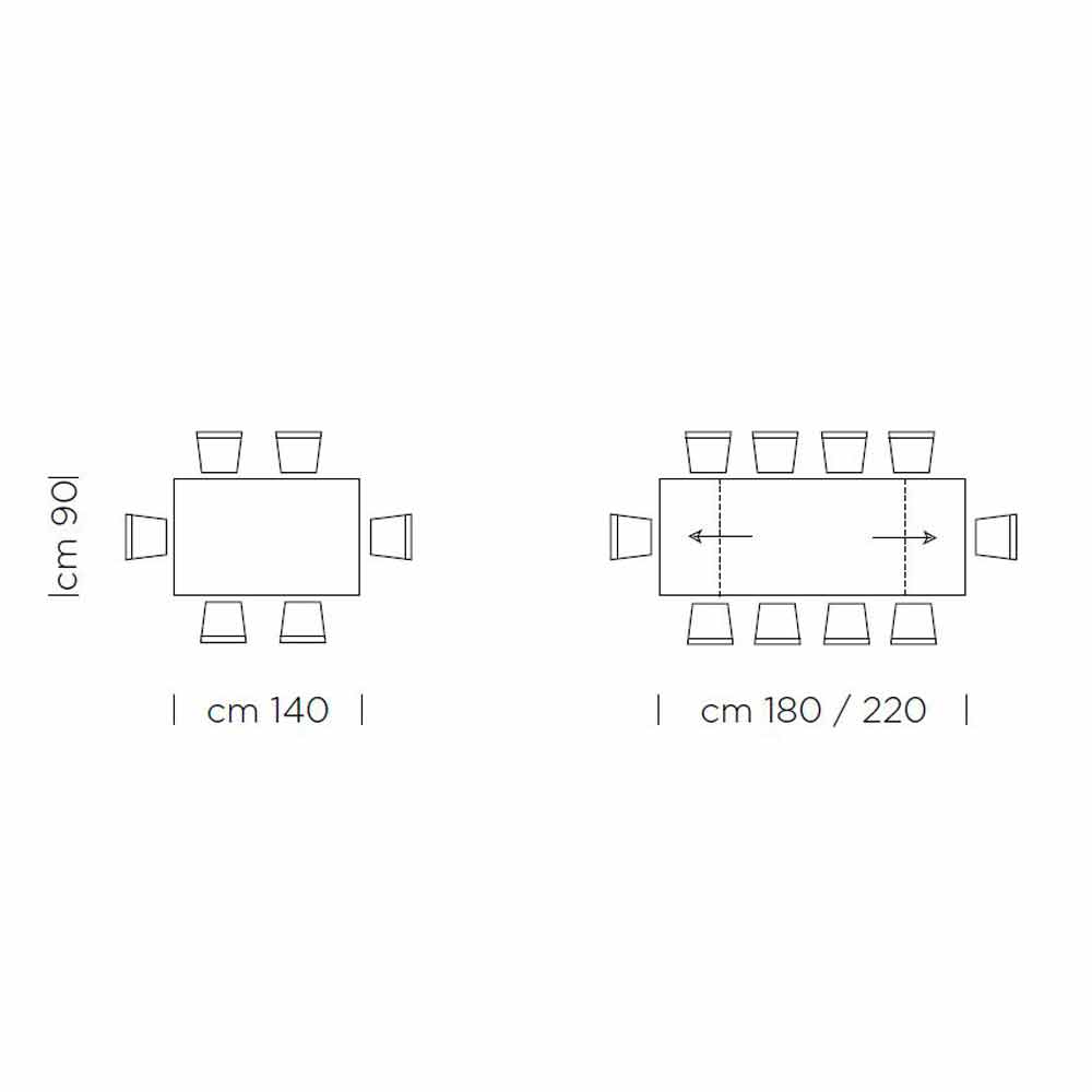 - L 140/220 x D 90 x H 75,5 10 sittplatser (2 st 40 cm förlängningar);