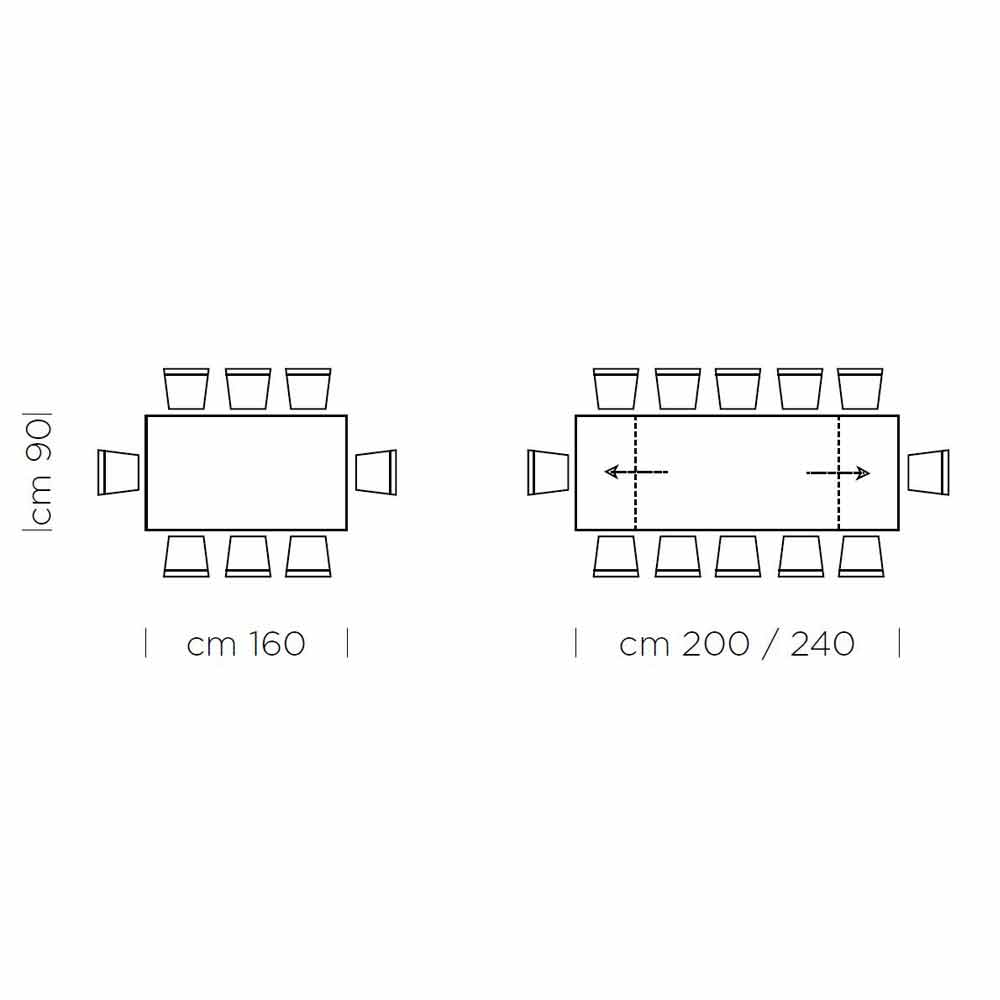 - L 160/240 x D 90 x H 75,5 12 säten (2 st 40 cm förlängningar)