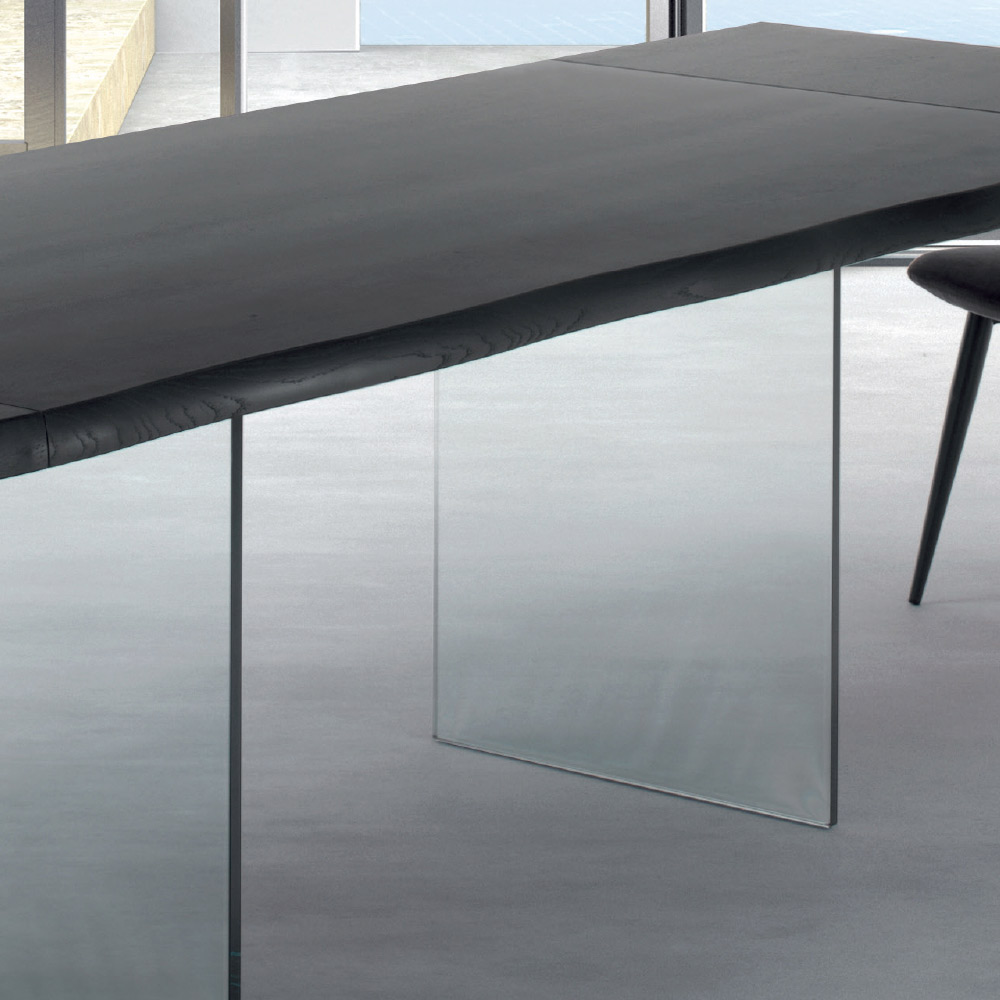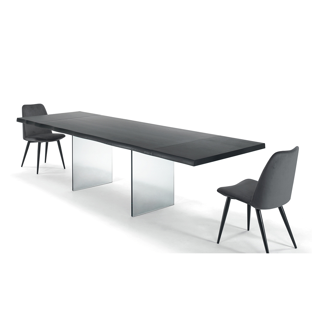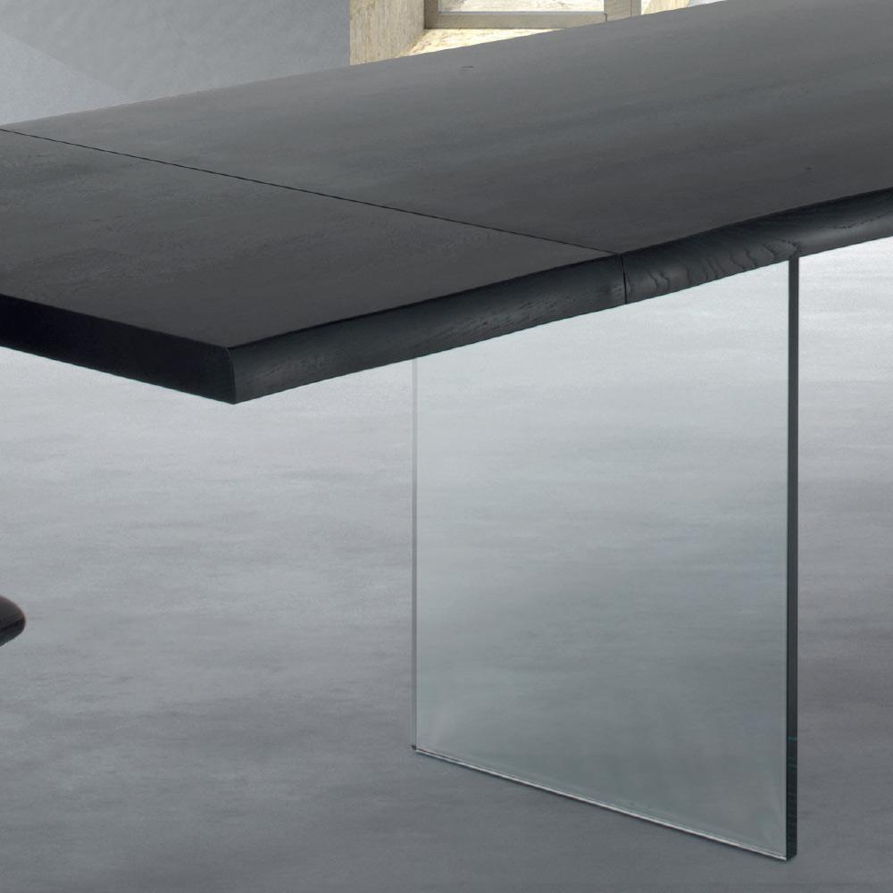 Utdragbart matbord upp till 300 cm med fanerad träskiva och glasunderrede tillverkat i Italien.